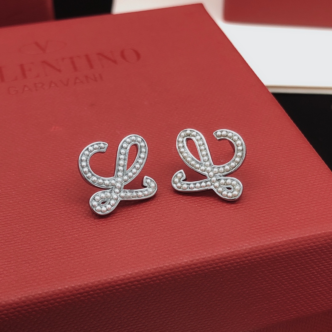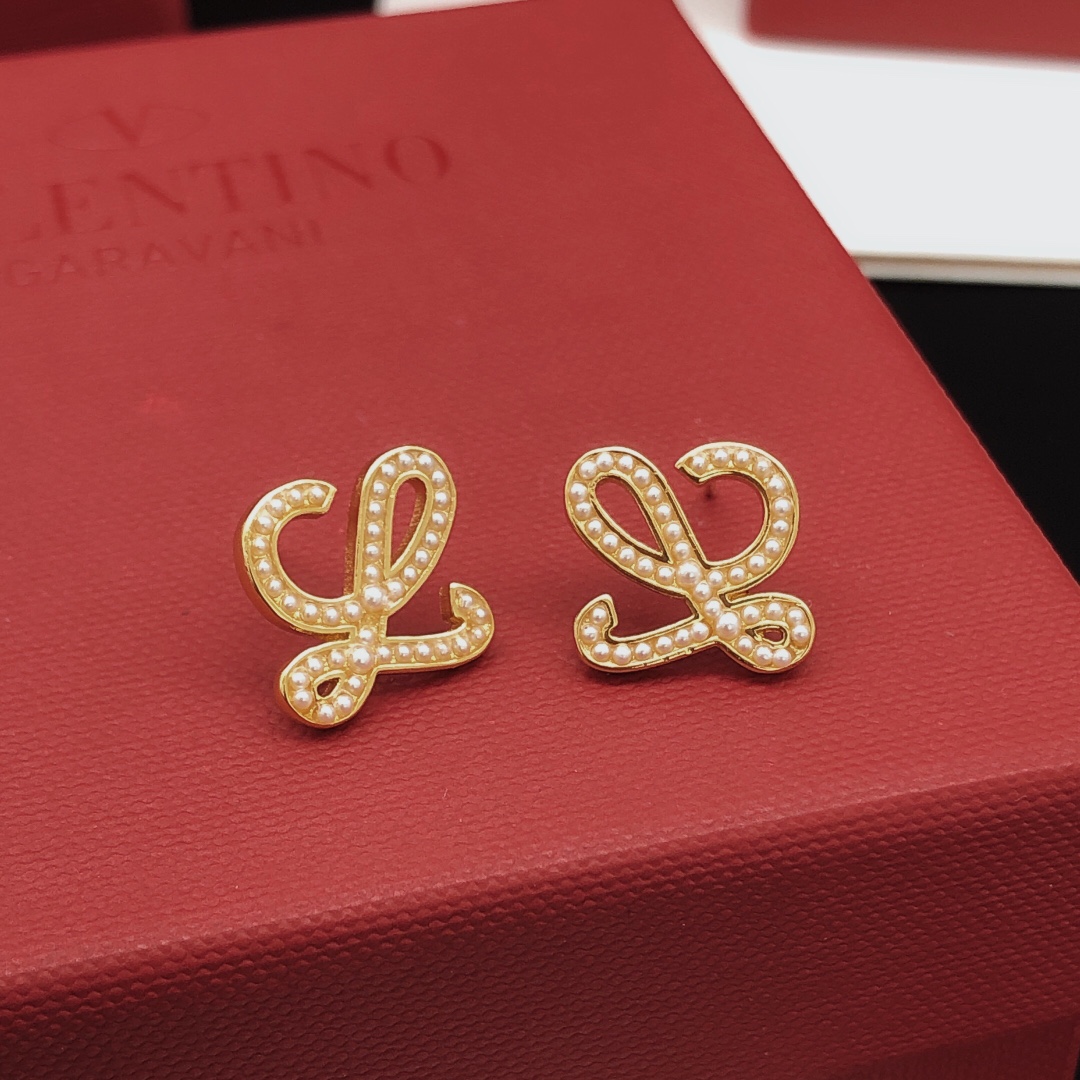 LWE007 Loewi Pearl Embellished L letter Stud Earrings In Metal