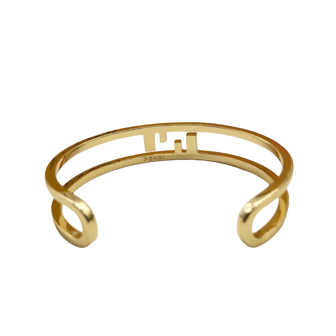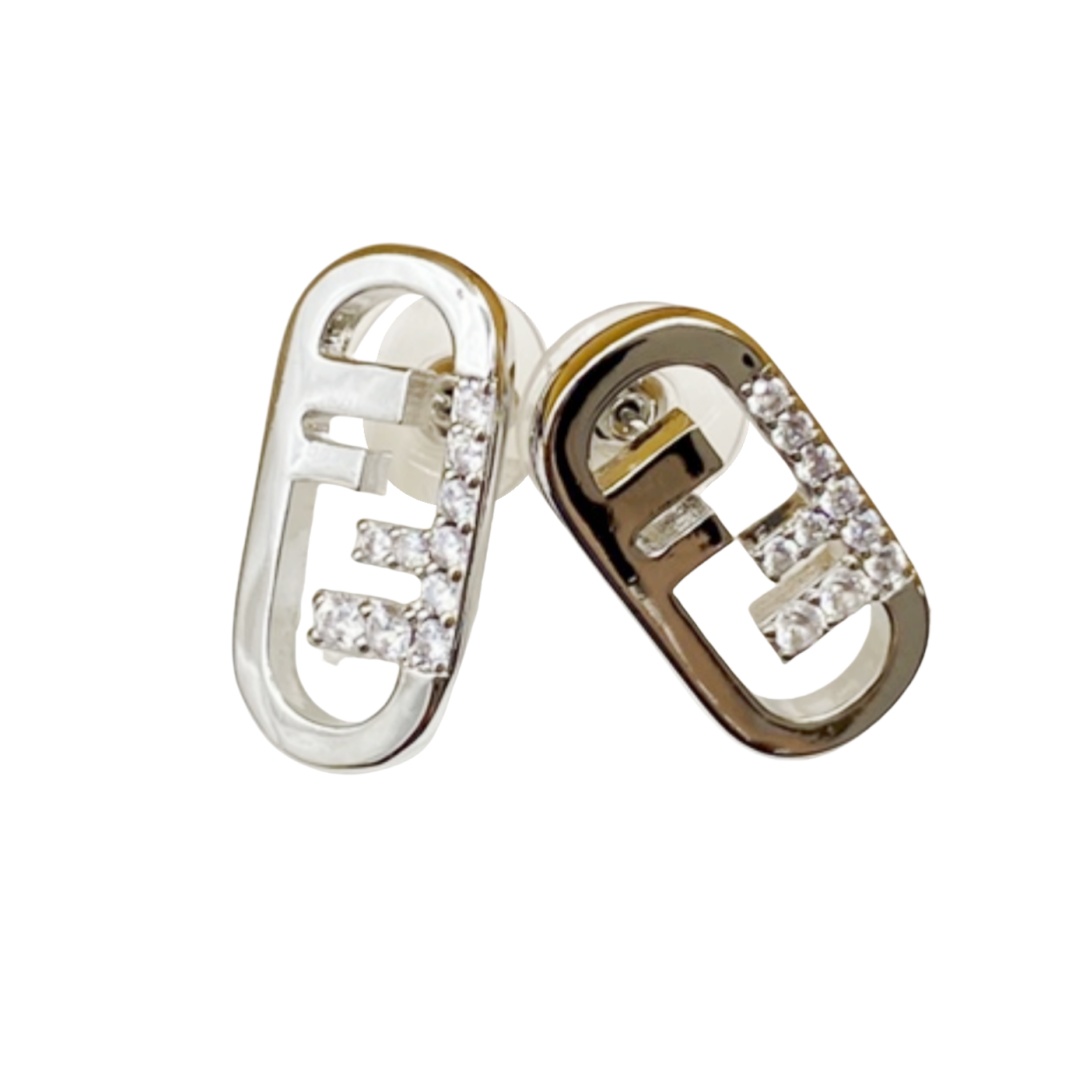 FDE015 Fendi O'Lock Hoop Earrings in metal gold finish and crystal