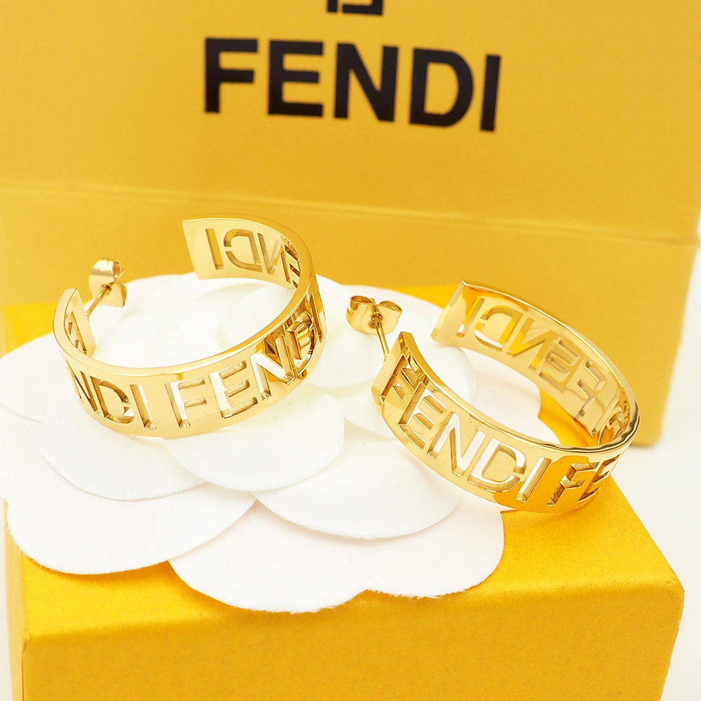 FDE041 Fendi Logo Cut-Out Hoop Earrings