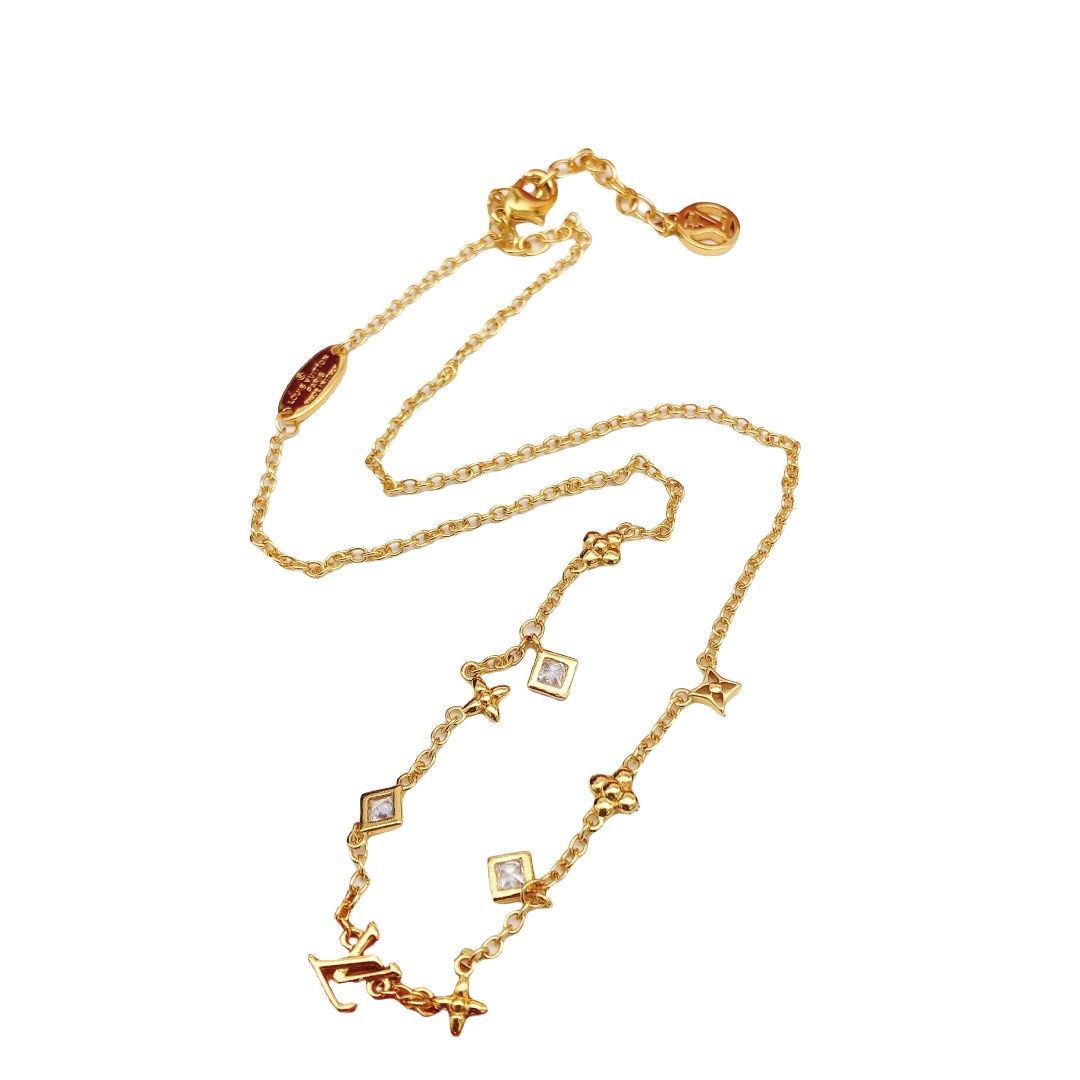 LVN003 Louis Metal Crystal LV In The Sky Necklace Gold