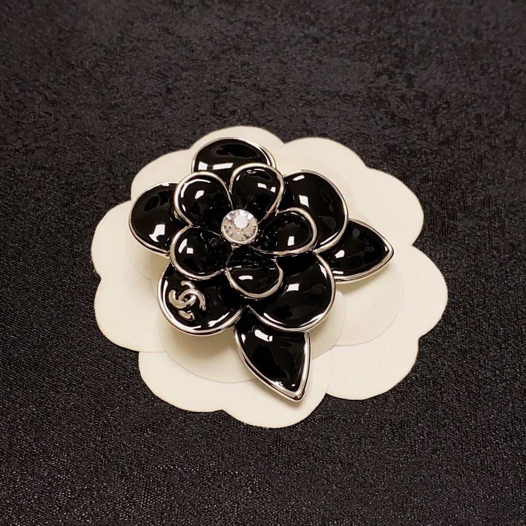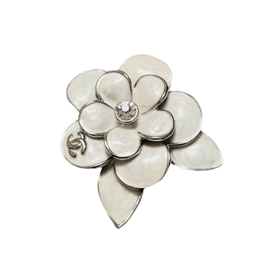 BCB217 Pearl and crystal flower with CC logo brooch pin