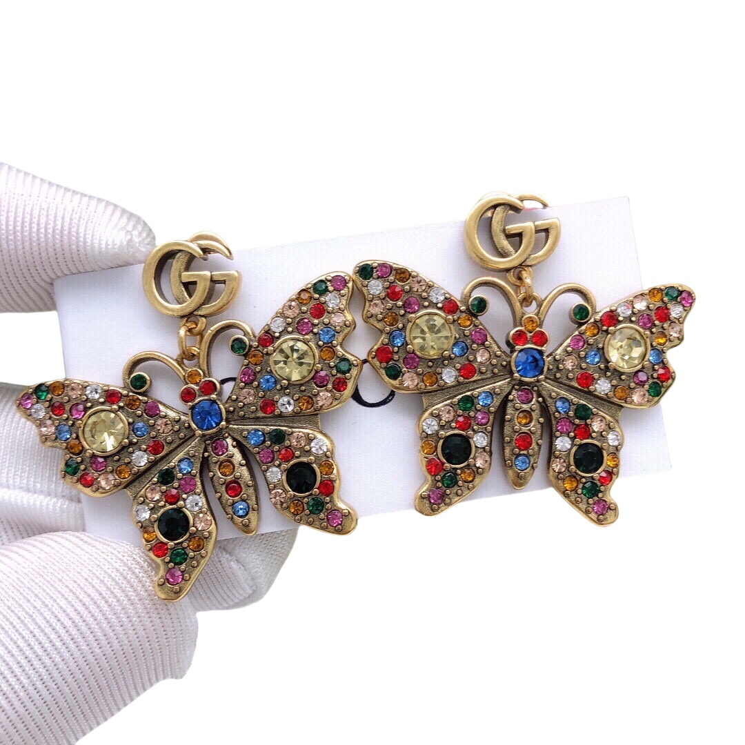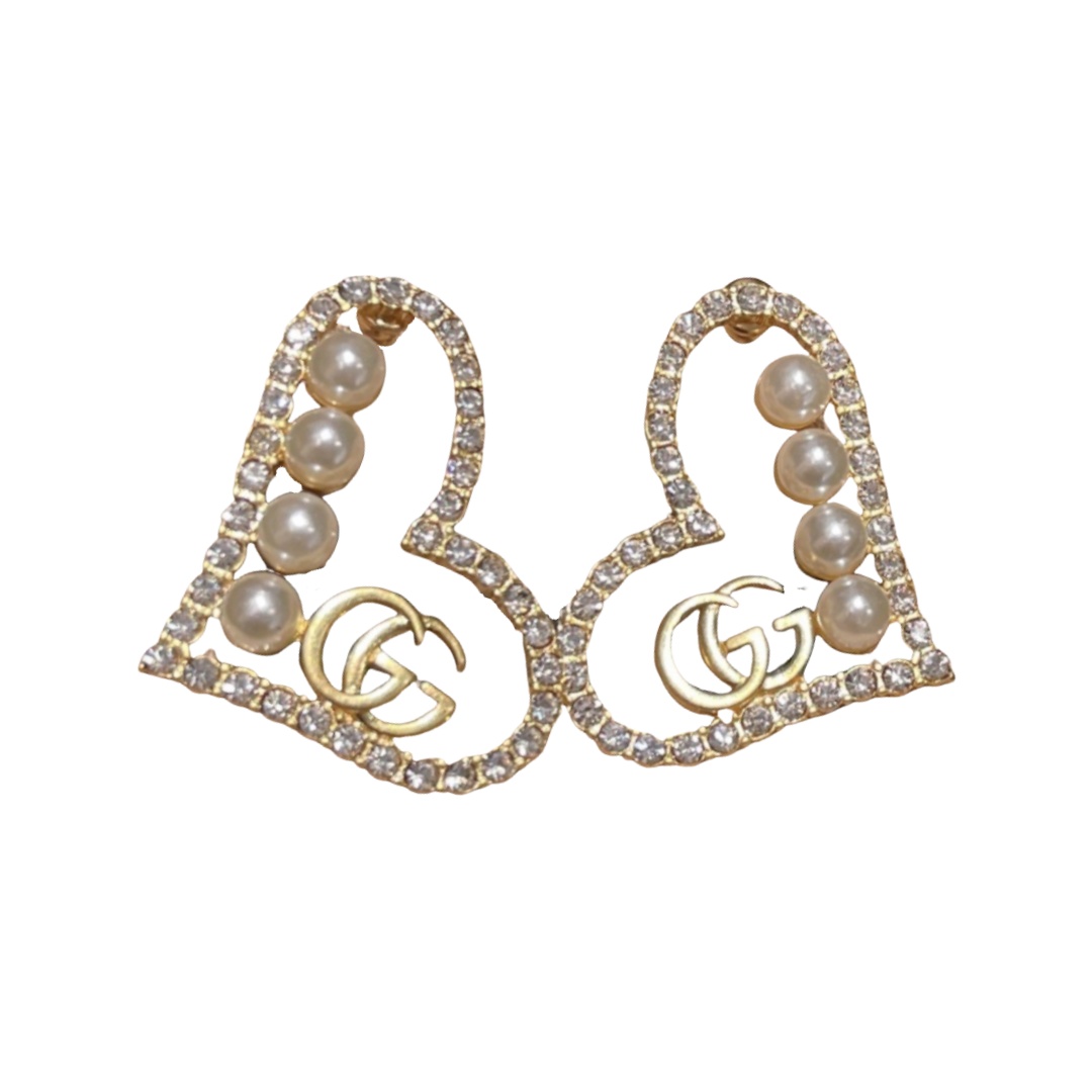 GGE039 Exaggerated luxury diamond round double G letter long pendant earrings