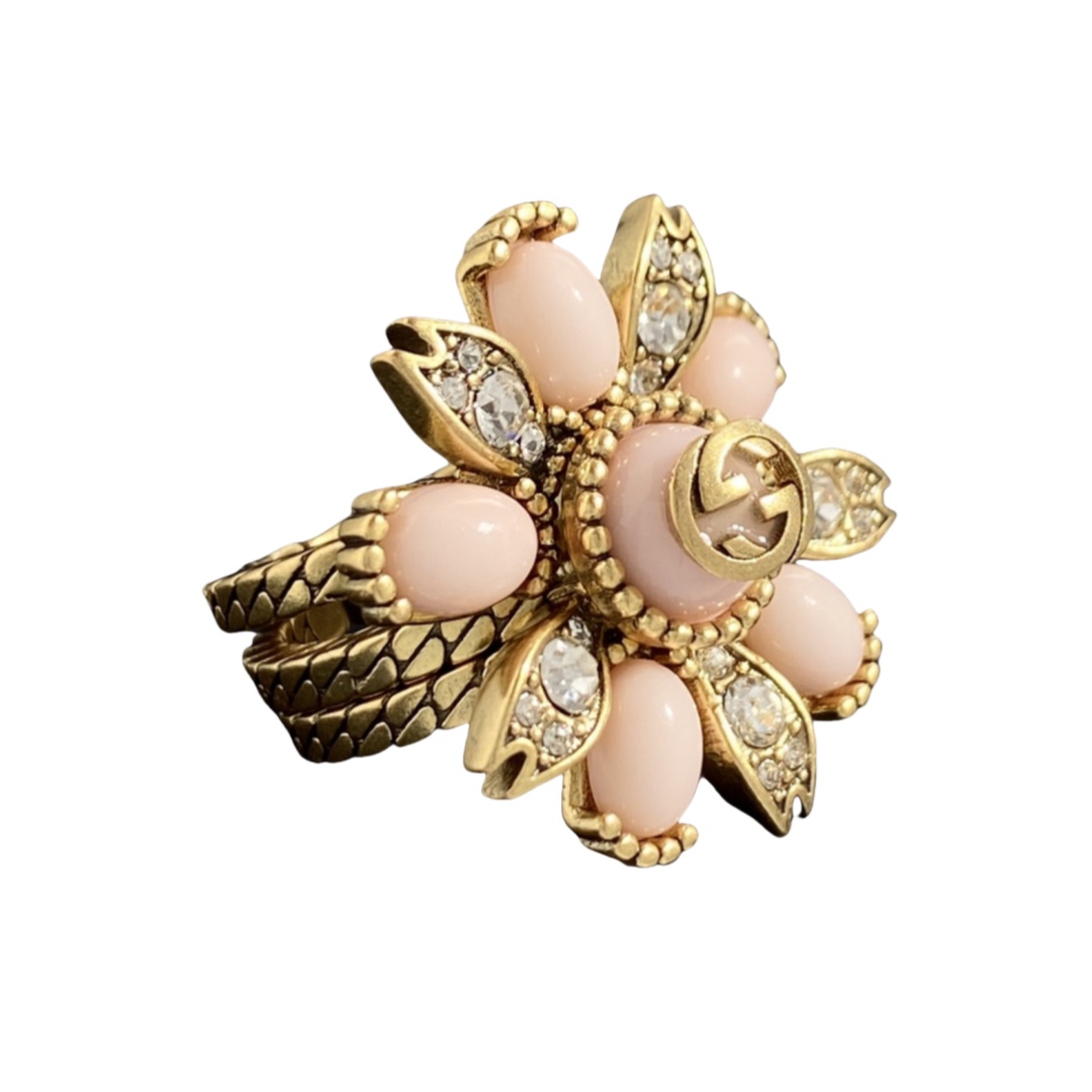 GGR007 Interlocking G and gemstone stacked flower ring