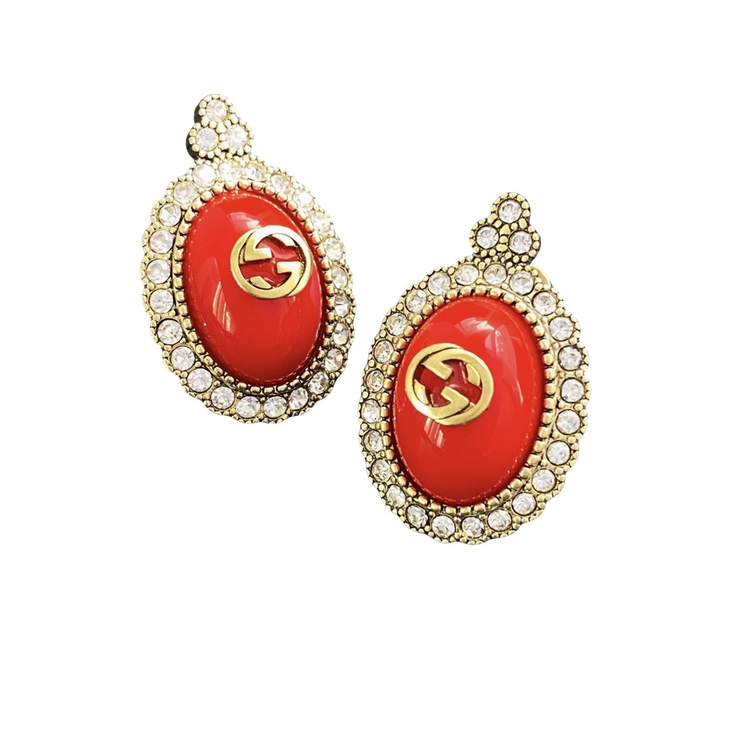 GGE070 Enamel Cross Interlocking GG logo drop earring