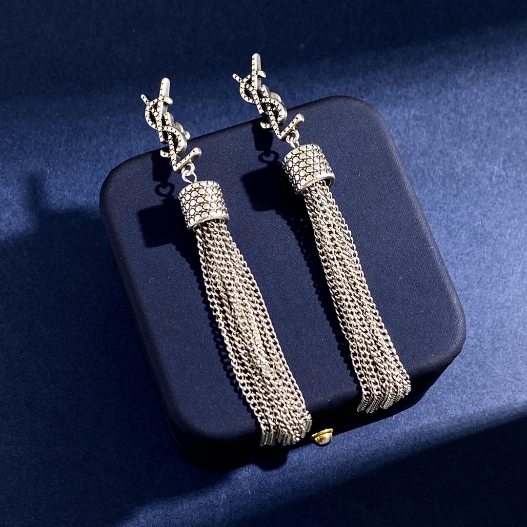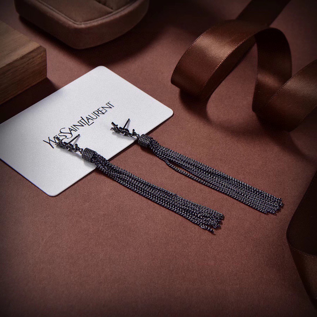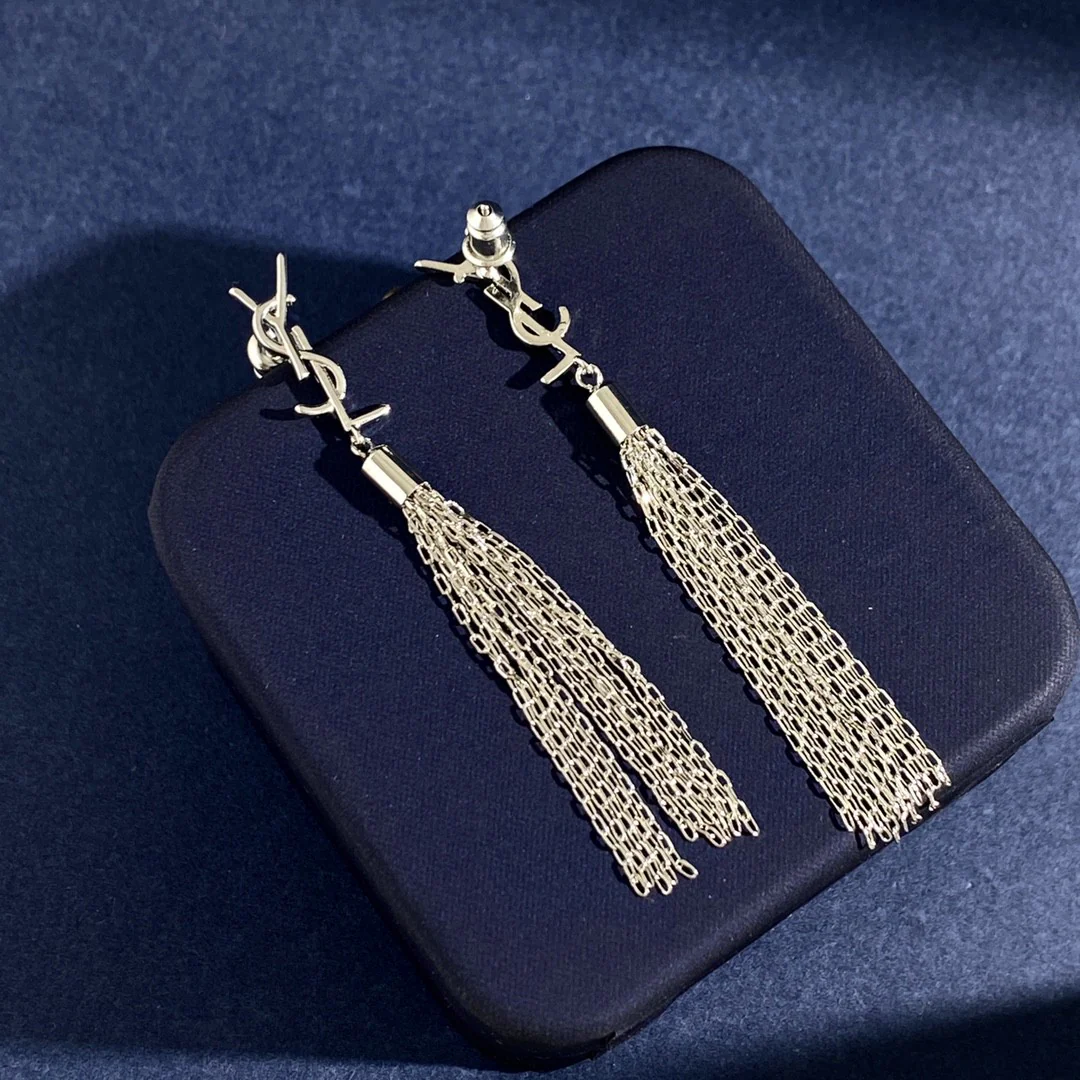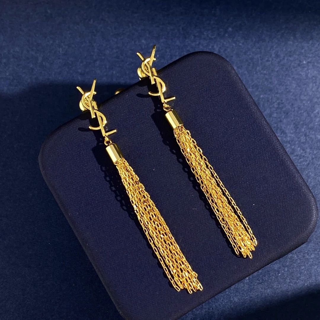 YYE006 loulou earrings with chain tassels in light gold-colored brass