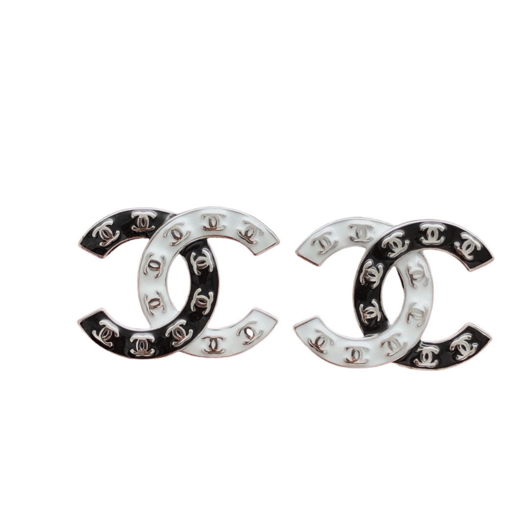 BCB309 Black and white color acrylic marbling crystal heart shape with cc logo brooch pin