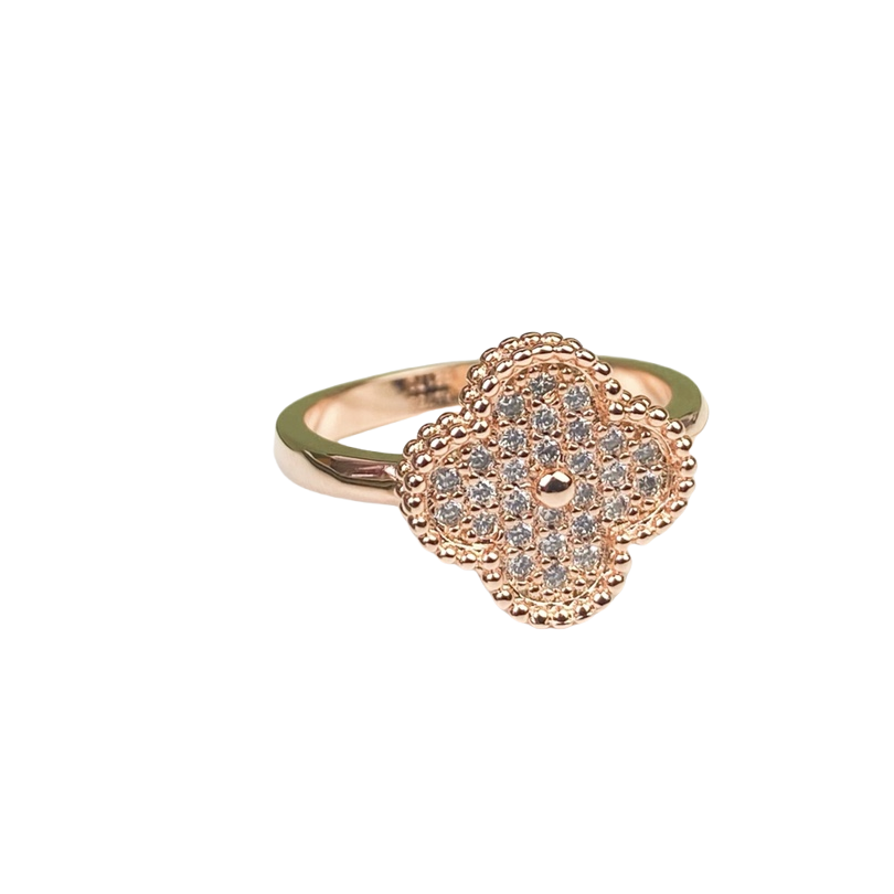 VCRS006 18k Rose Gold/gold onyx VCA Lucky Spring /Lucky Alhambra Ring