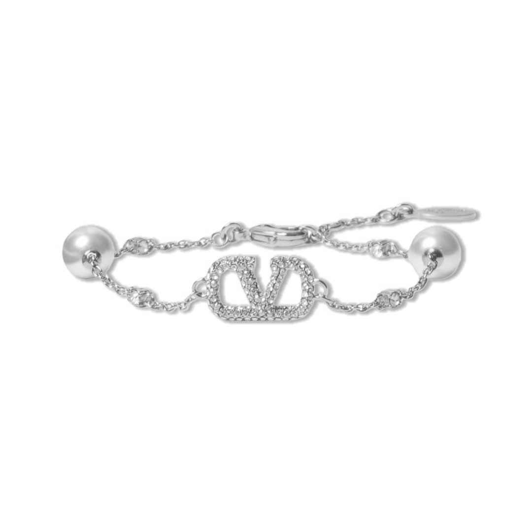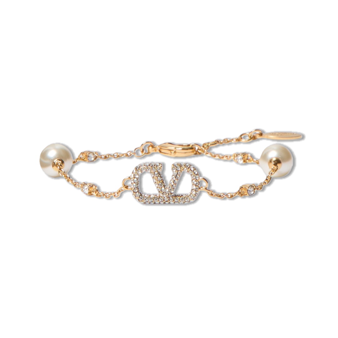 VTS034 Valentino Garavani Embellished VLogo and Faux Pearl Bracelet