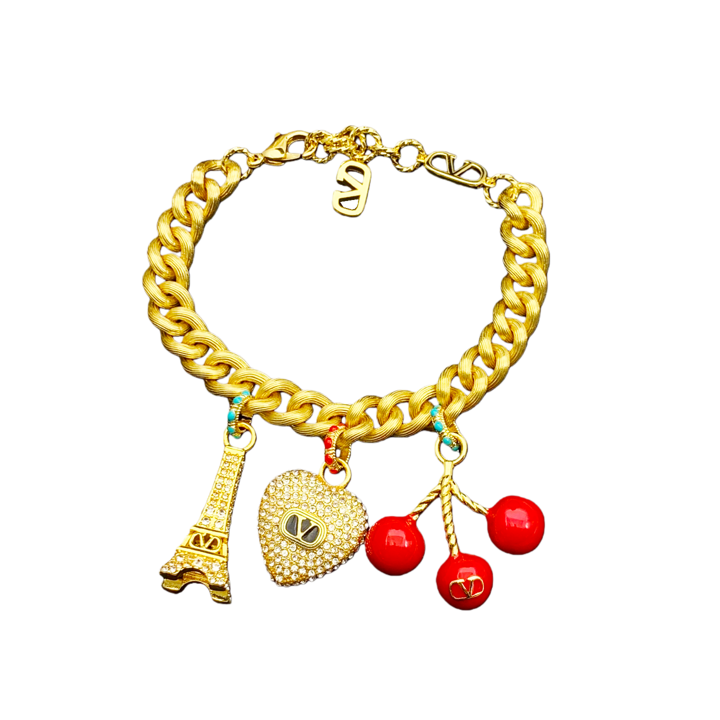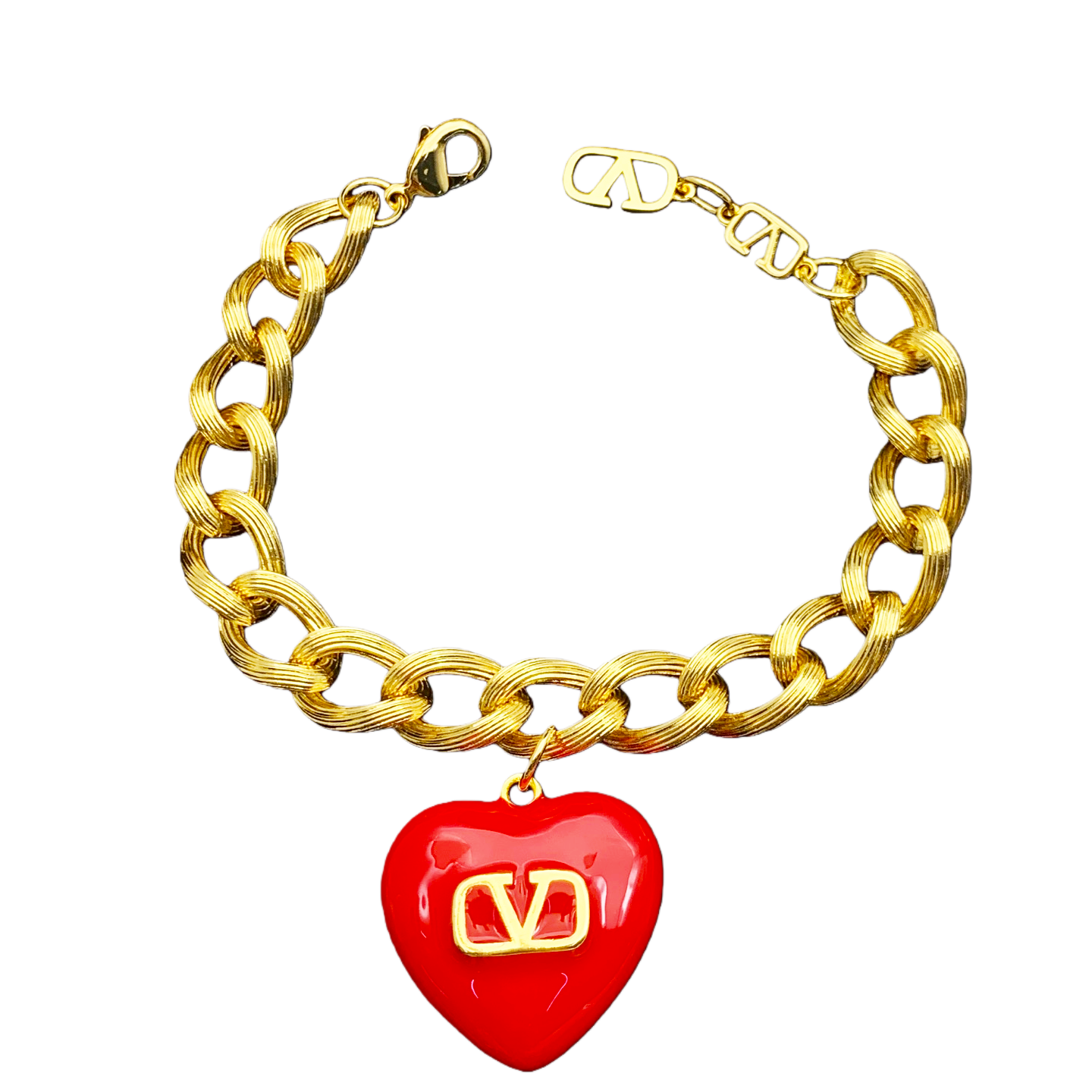VTS036 Valentino Garavani Coeur Royal Heart Charms bracelet Chunky Chain