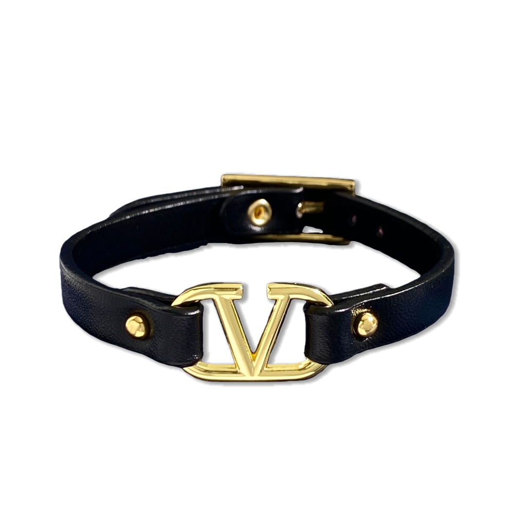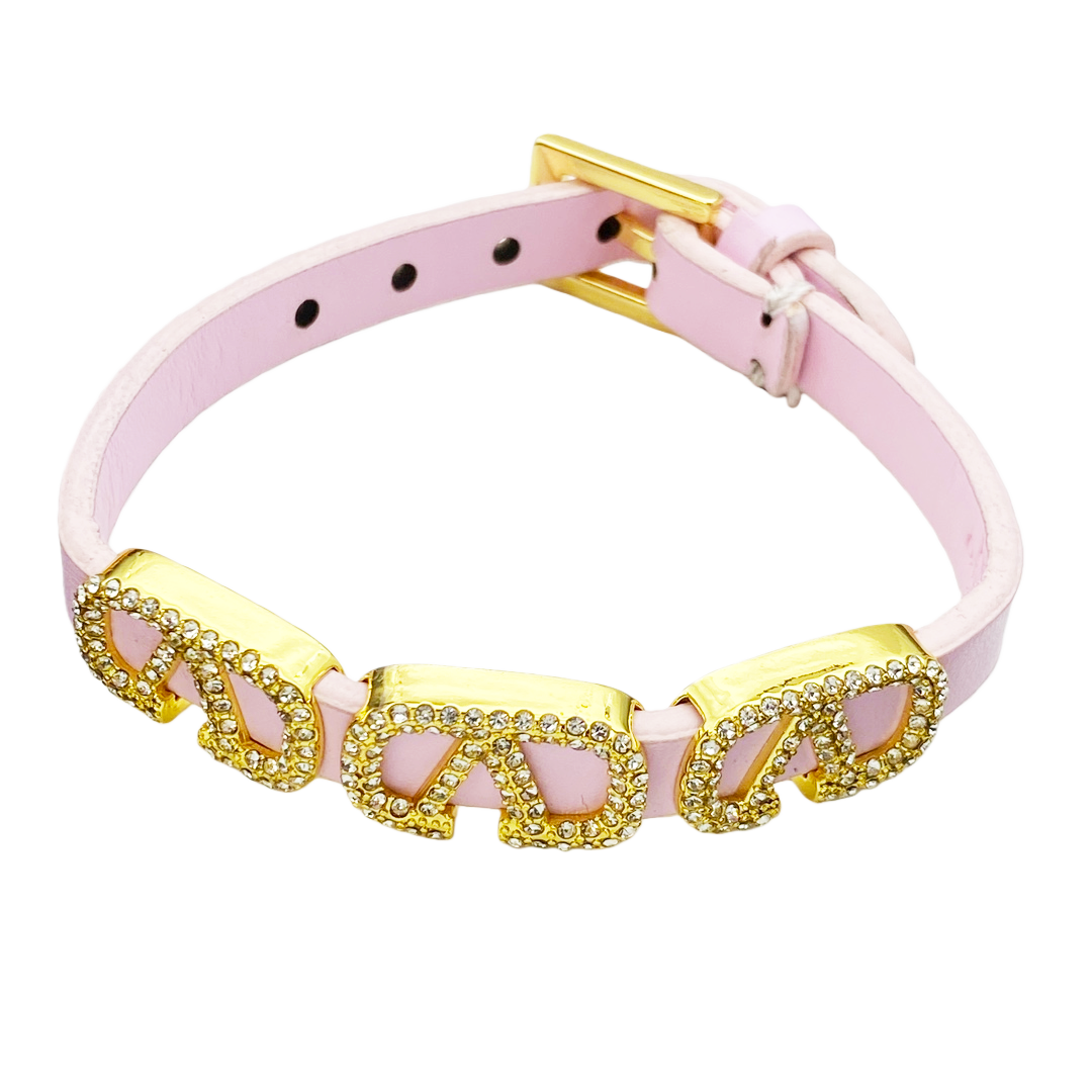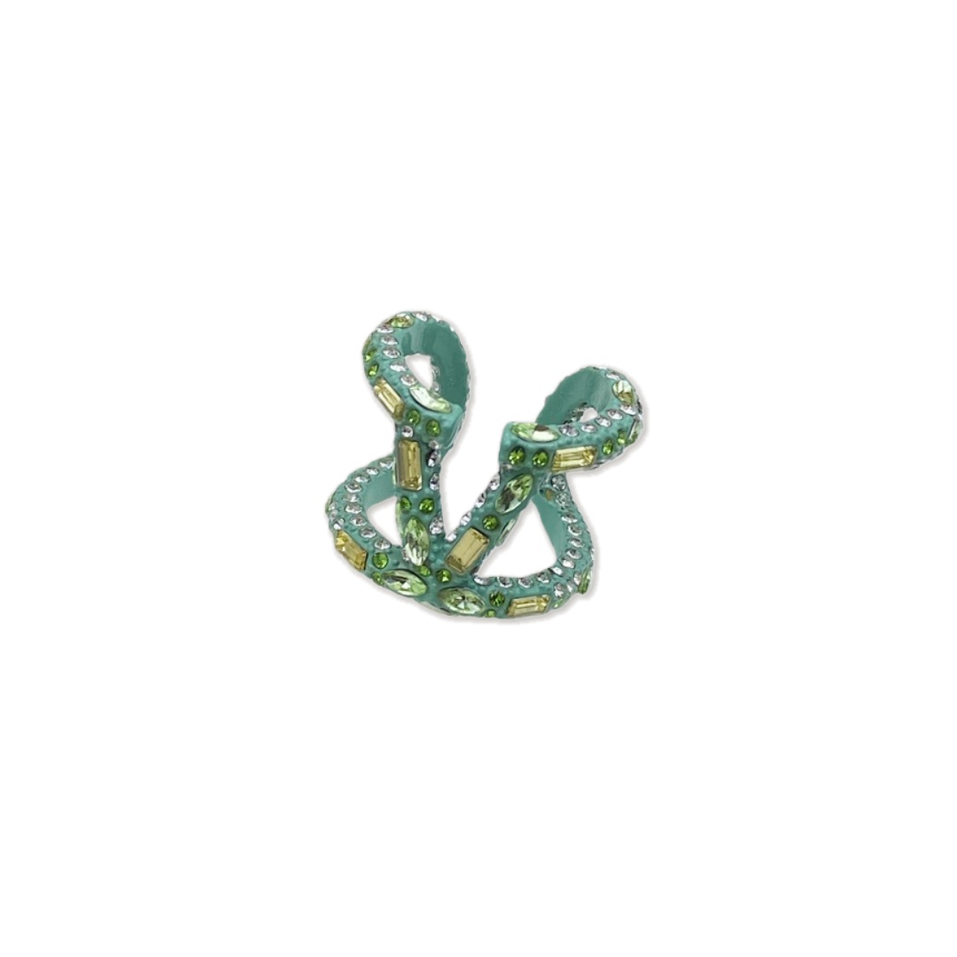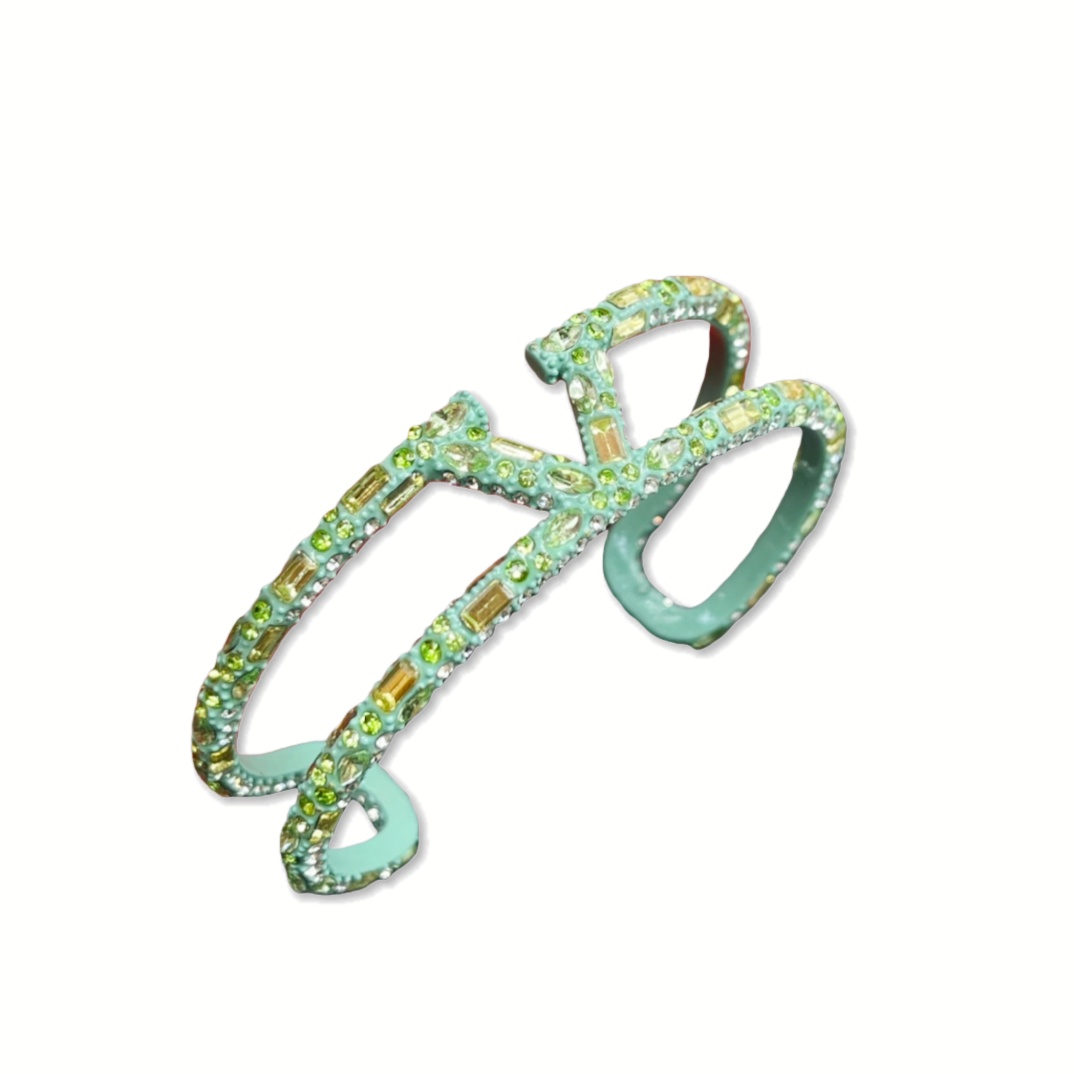 VTS006 Valentino Garavani Vlogo Signature Green Gold Rhinestone Cuff Bracelet