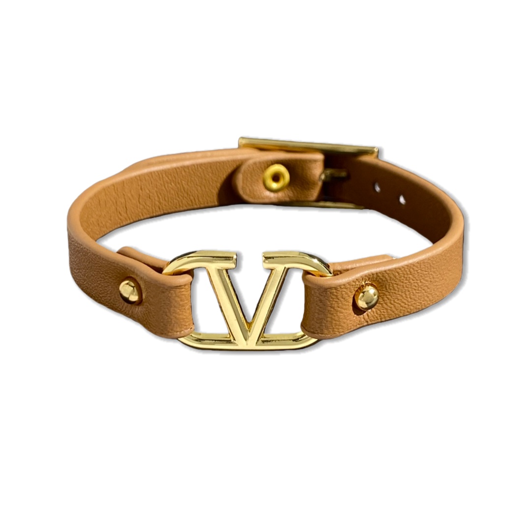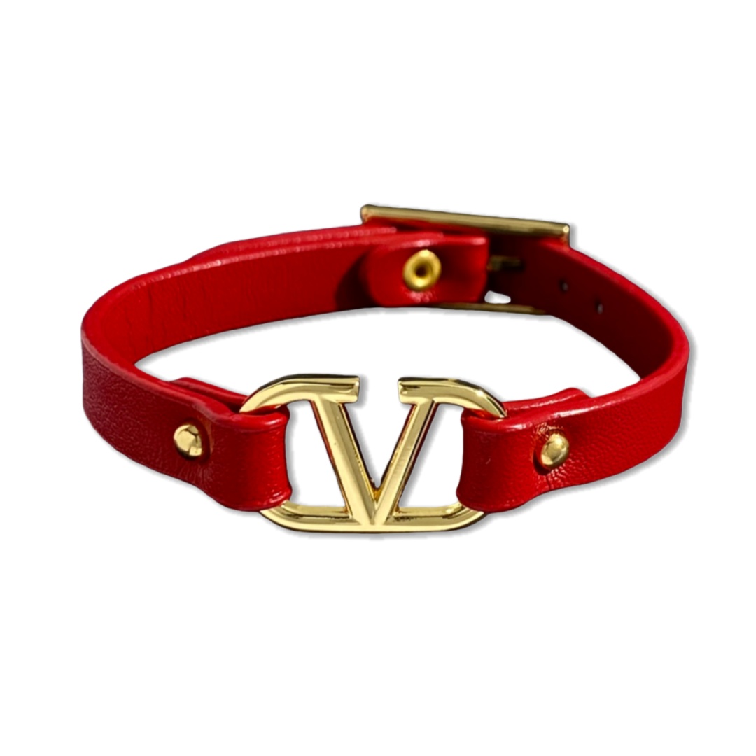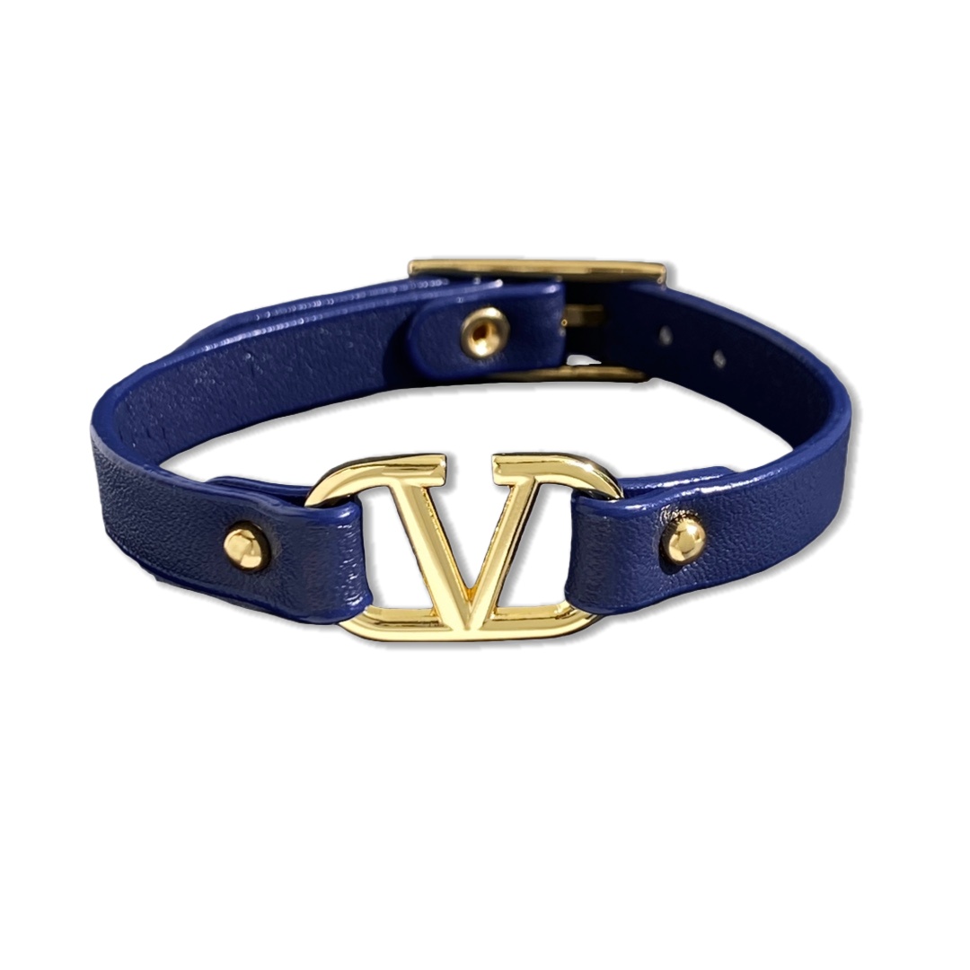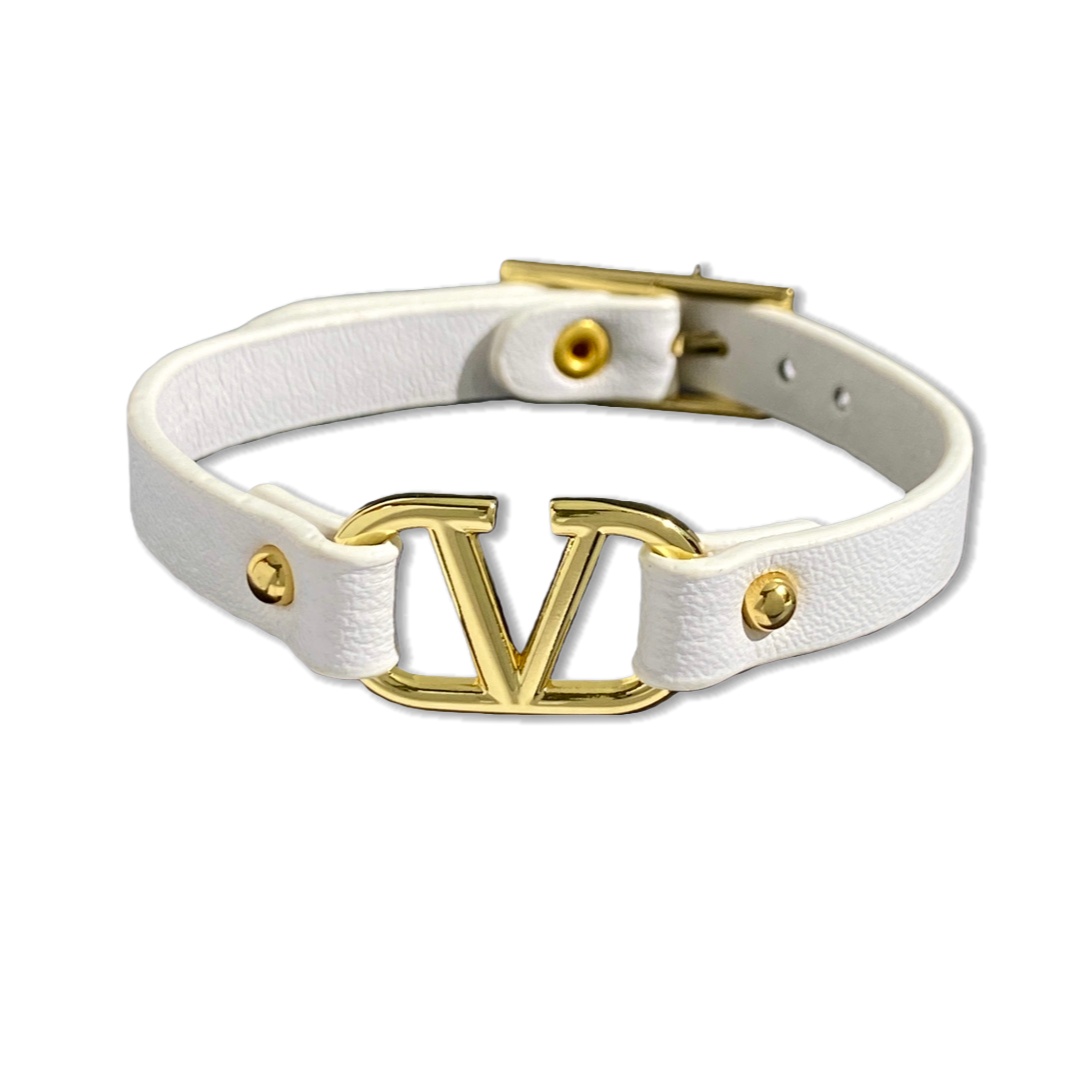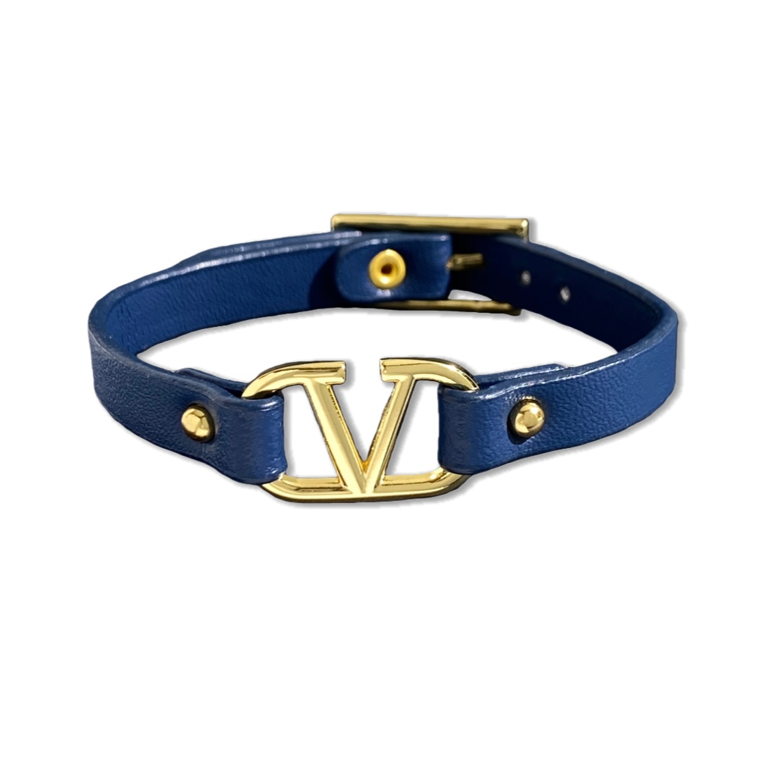 VTS006 Valentino Garavani Vlogo Signature Green Gold Rhinestone Cuff Bracelet
