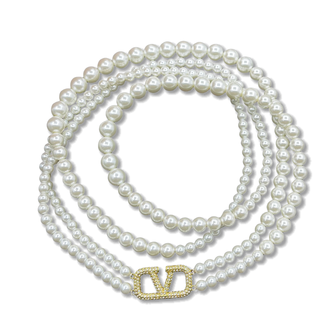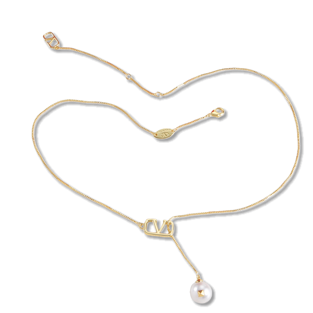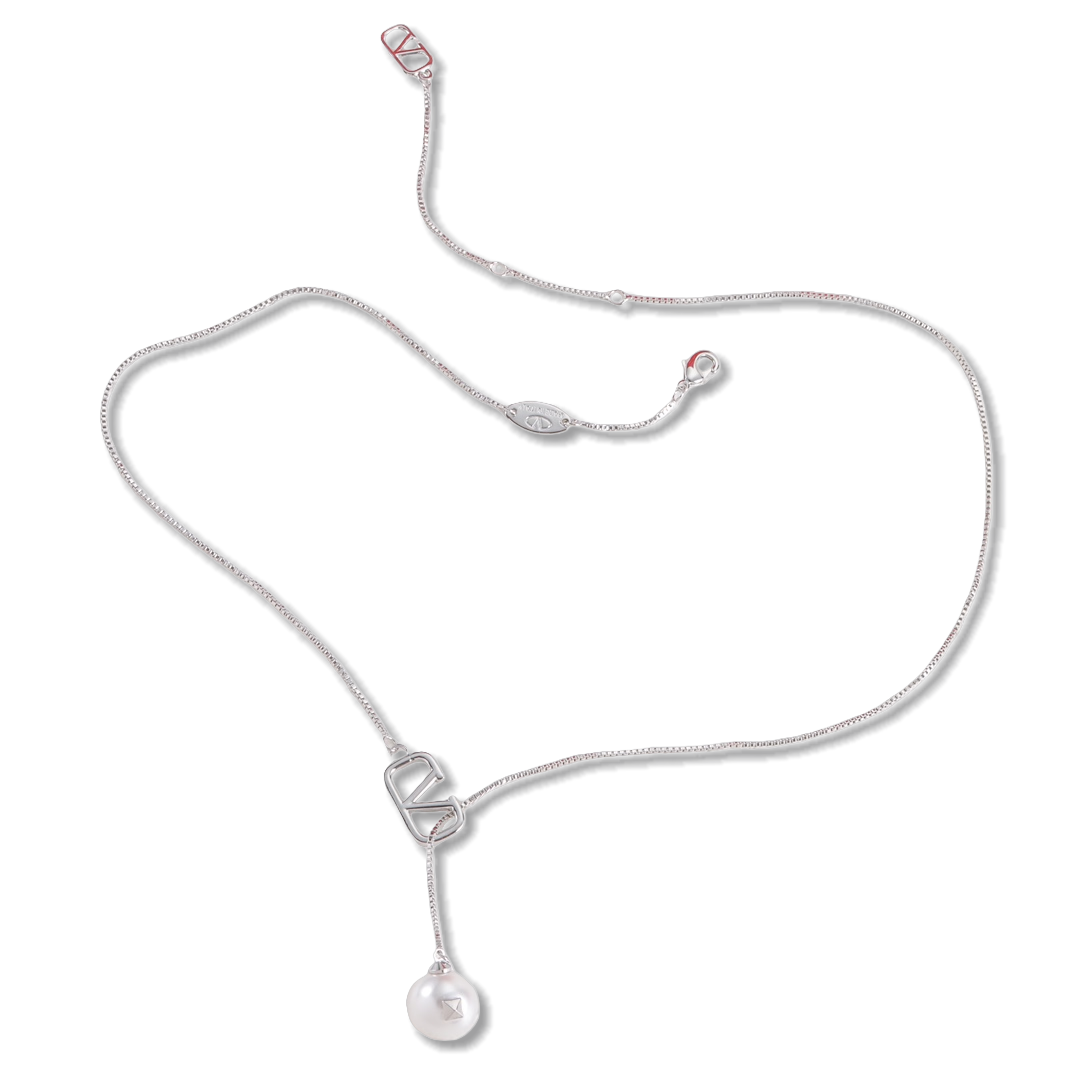 VTN044 Valentino Garavani VLogo Signature pearl long chain sweater necklace