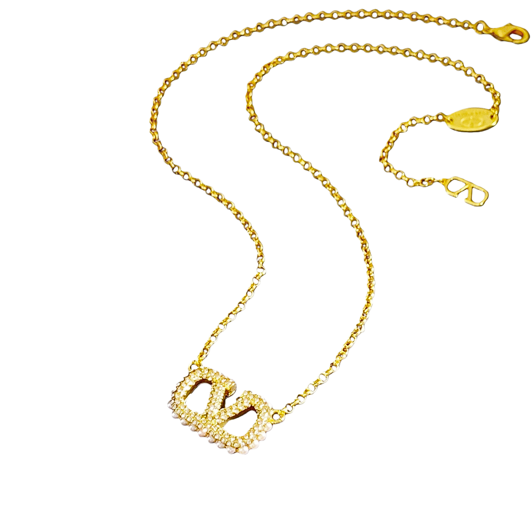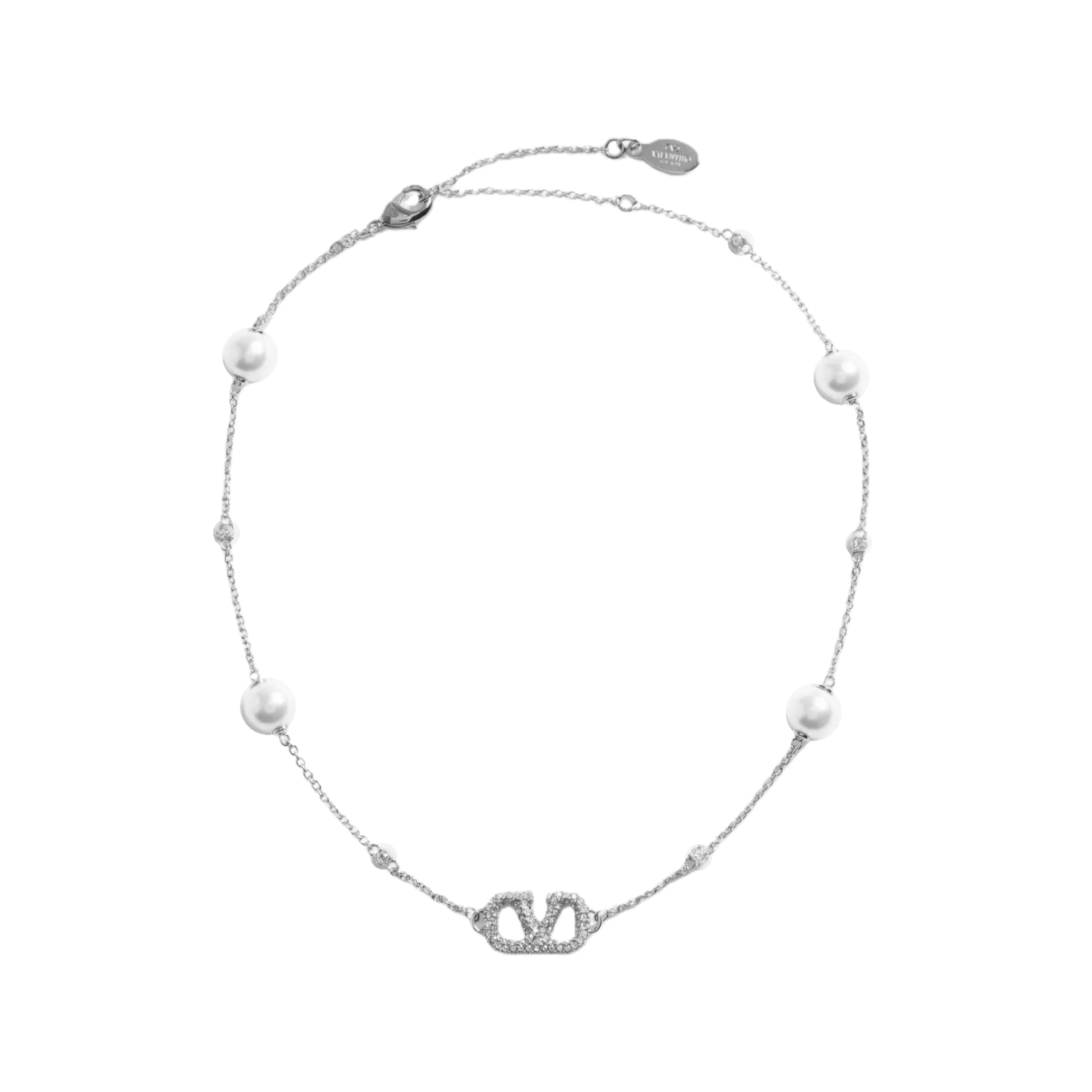 VTN040 Vlogo Signature Metal Necklace With Crystals And Pearls