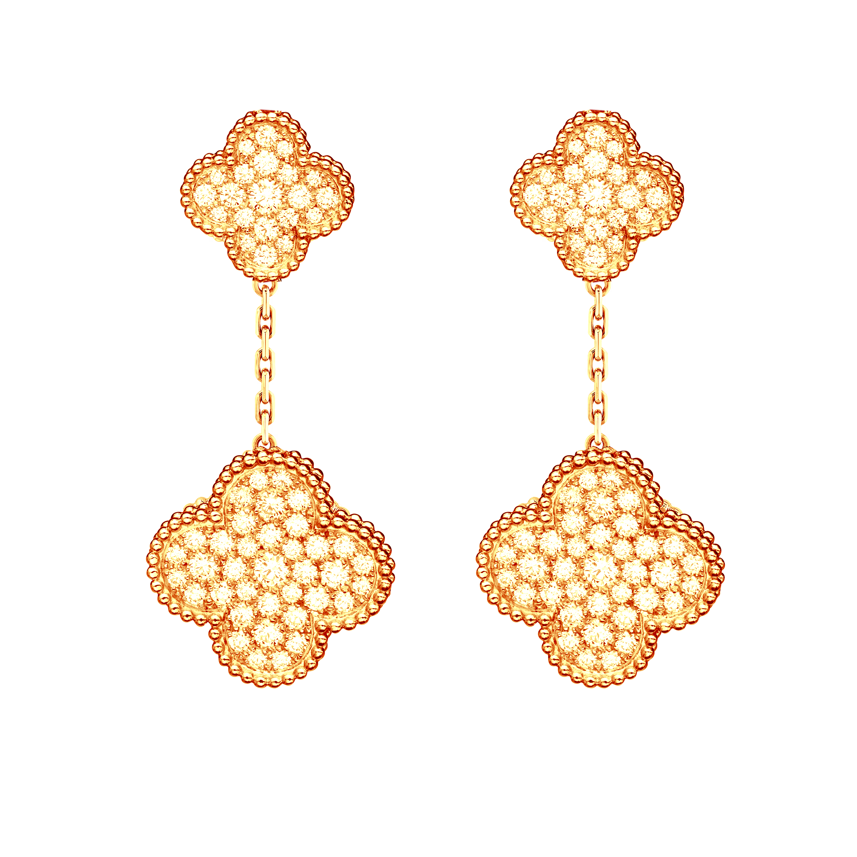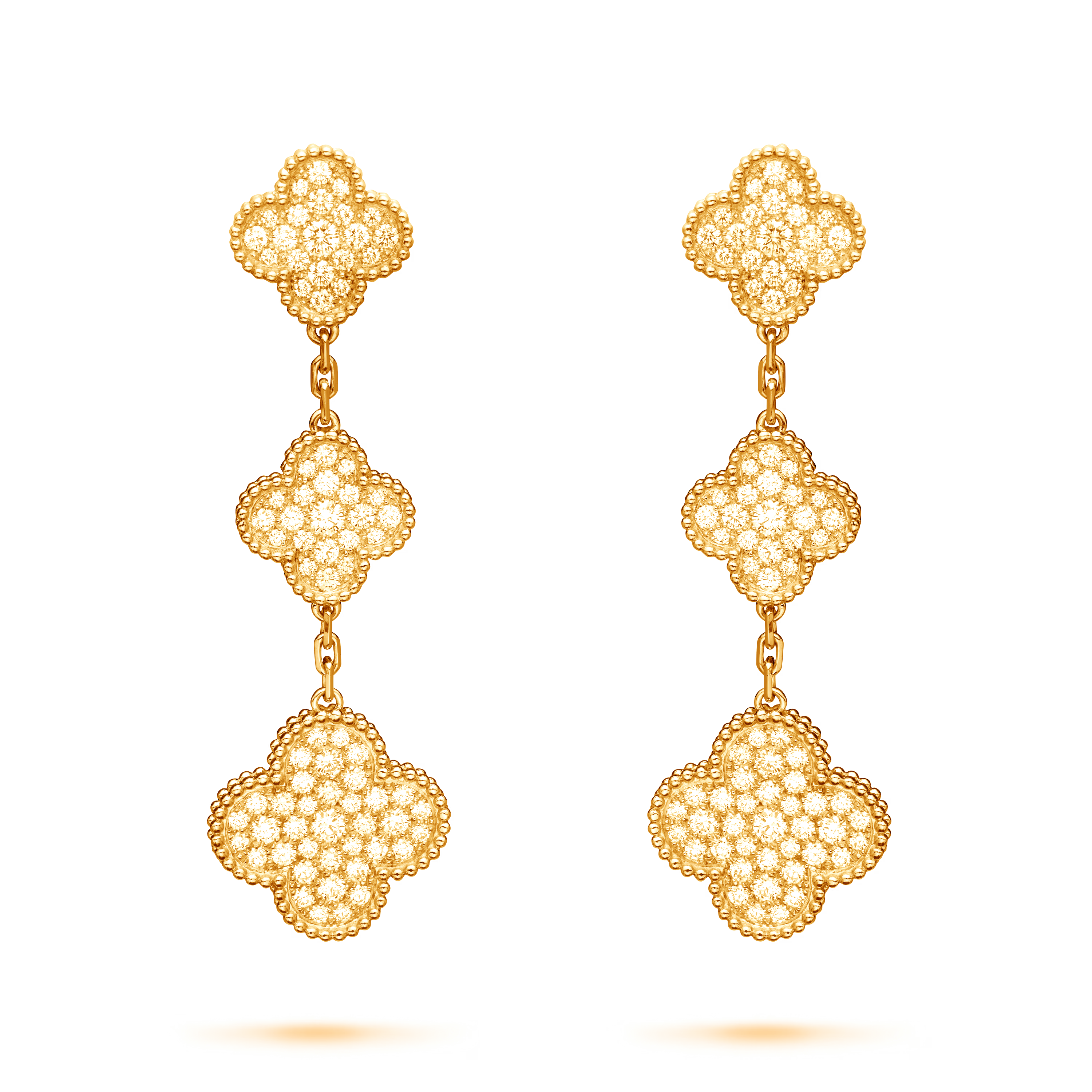 VCE021 VCA Vintage Magic Alhambra stud clip earring 3 motifs full Crystal diamond