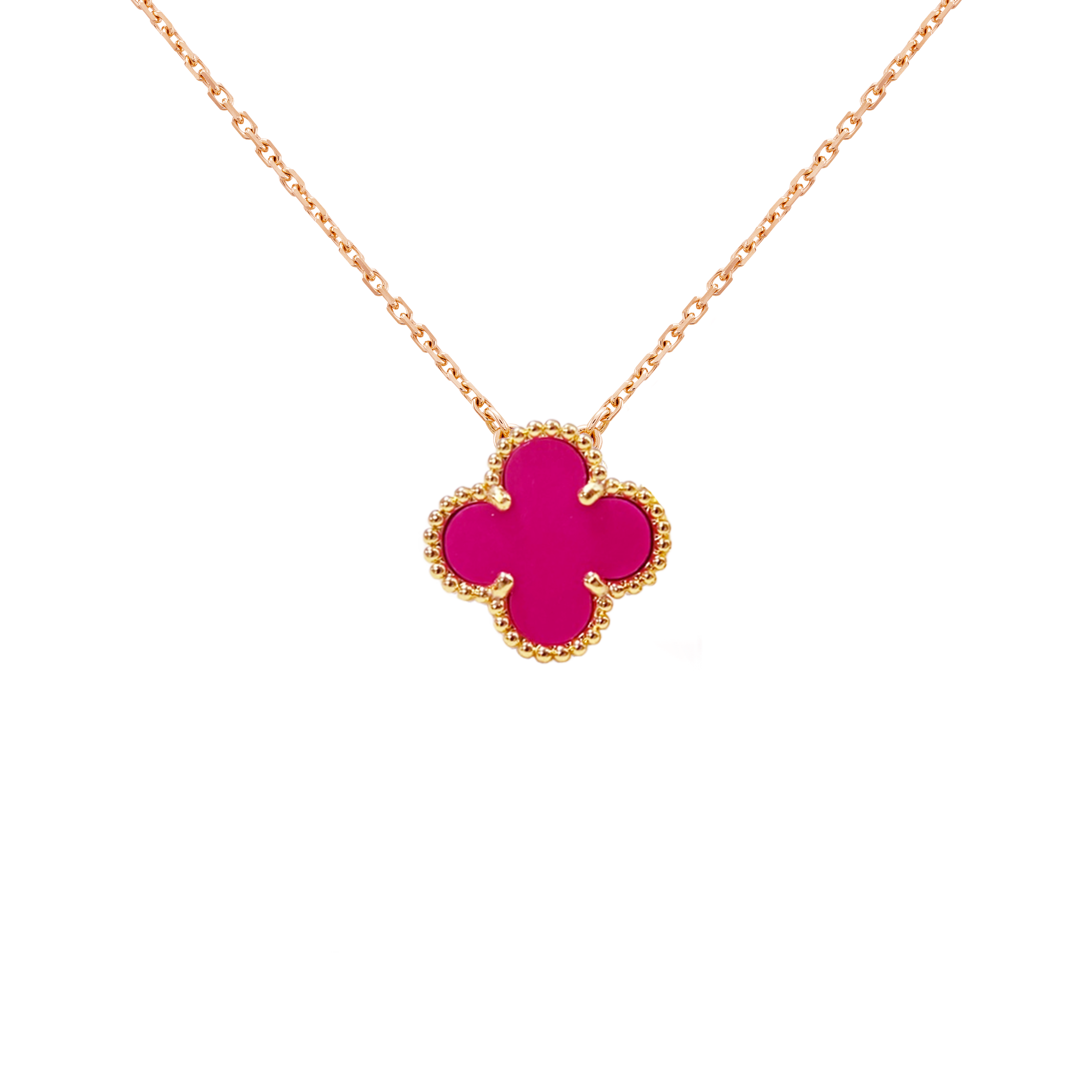 VCT021 VCA rose red stone Vintage Alhambra Pendant bracelet earring clip jewelry set