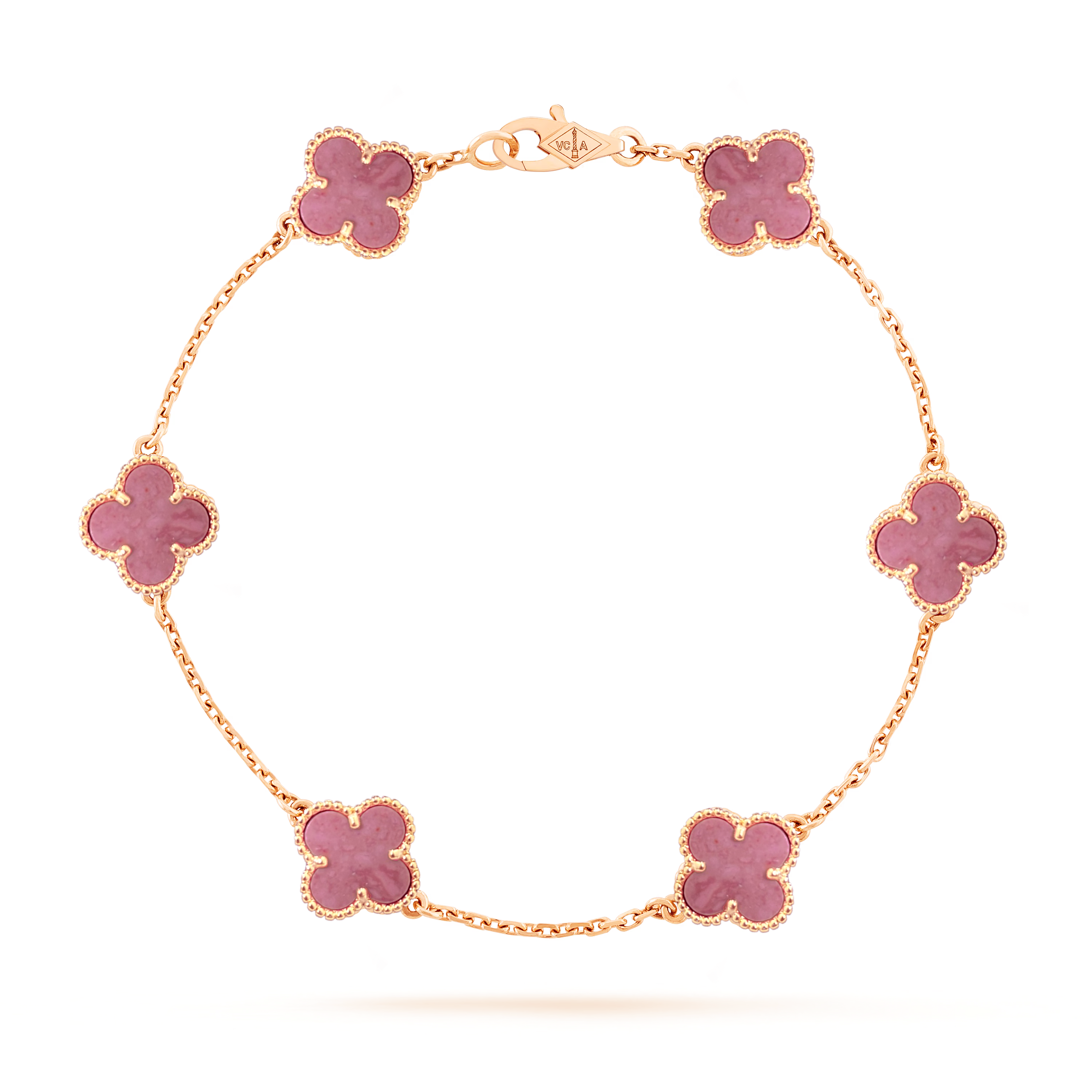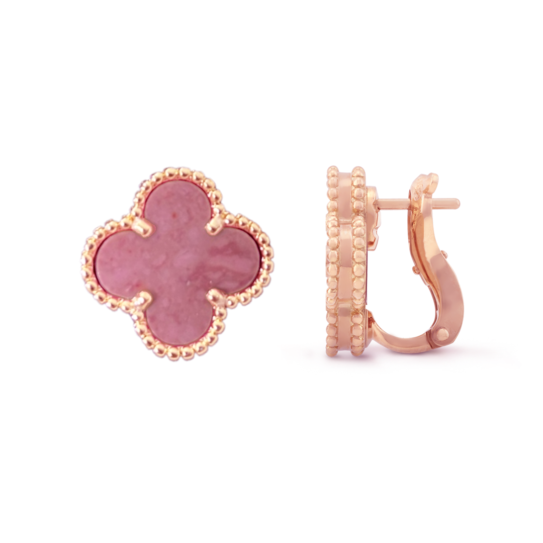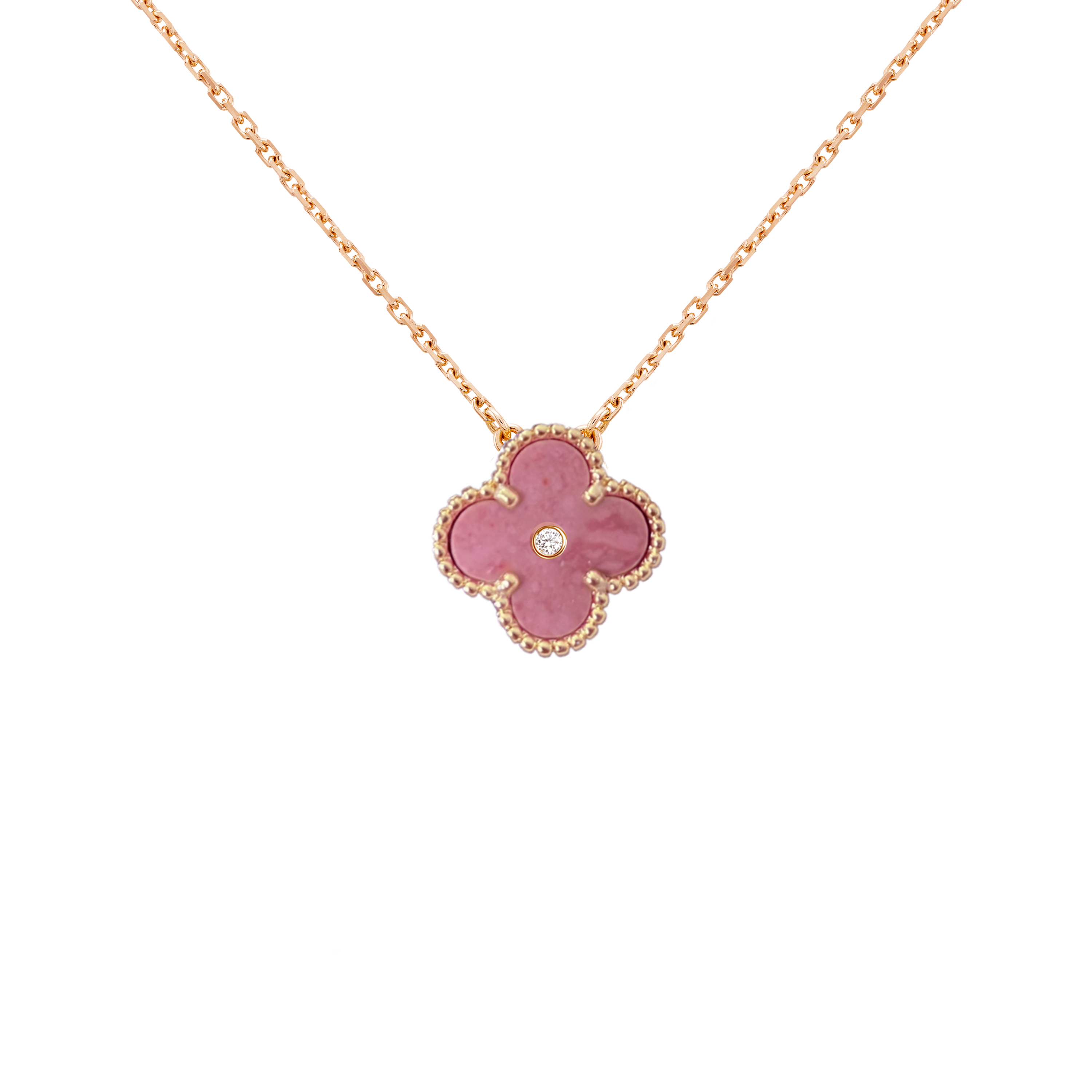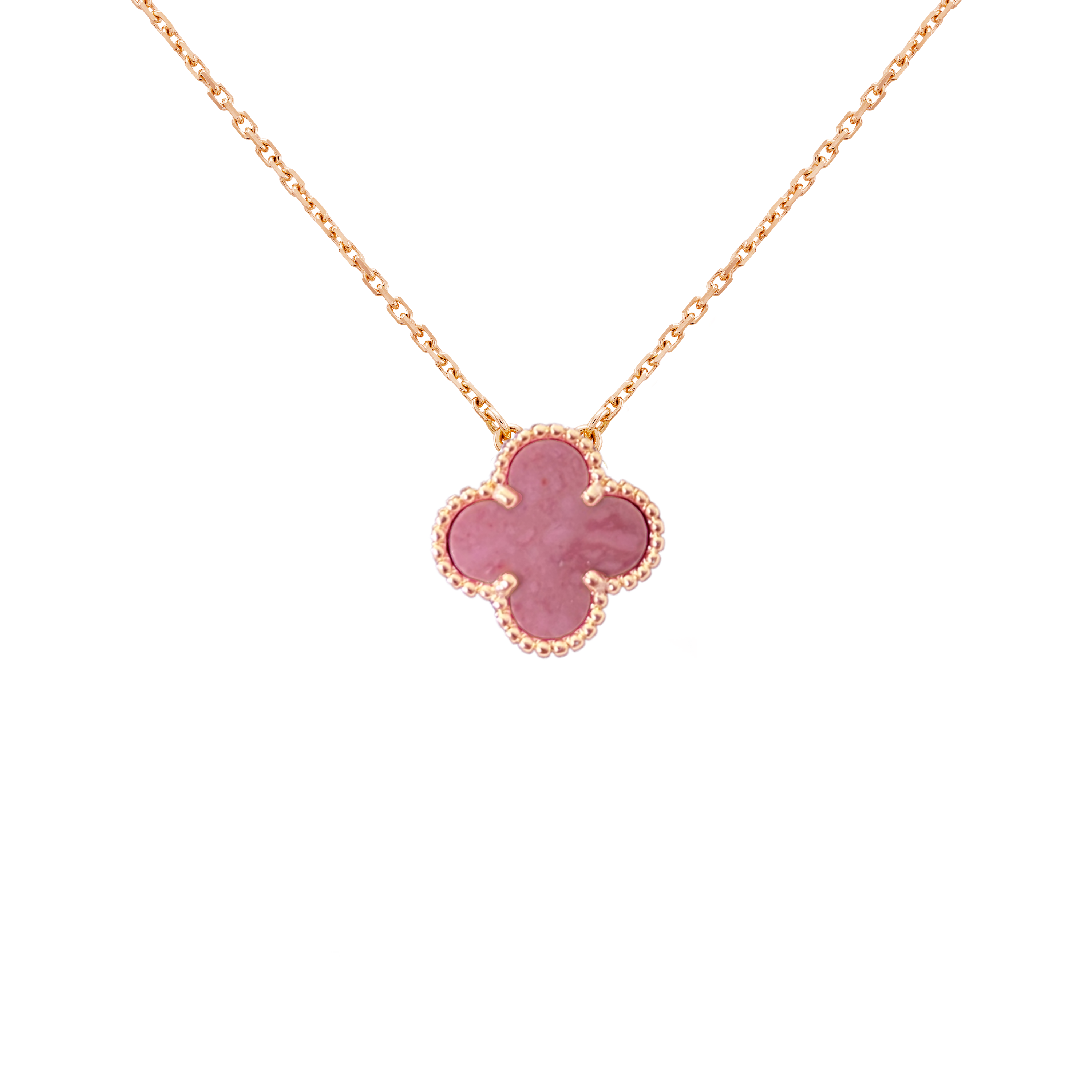 VCT020 VCA rhodonite stone Vintage Alhambra long necklace 20 motifs Pendant bracelet earring clip jewelry set
