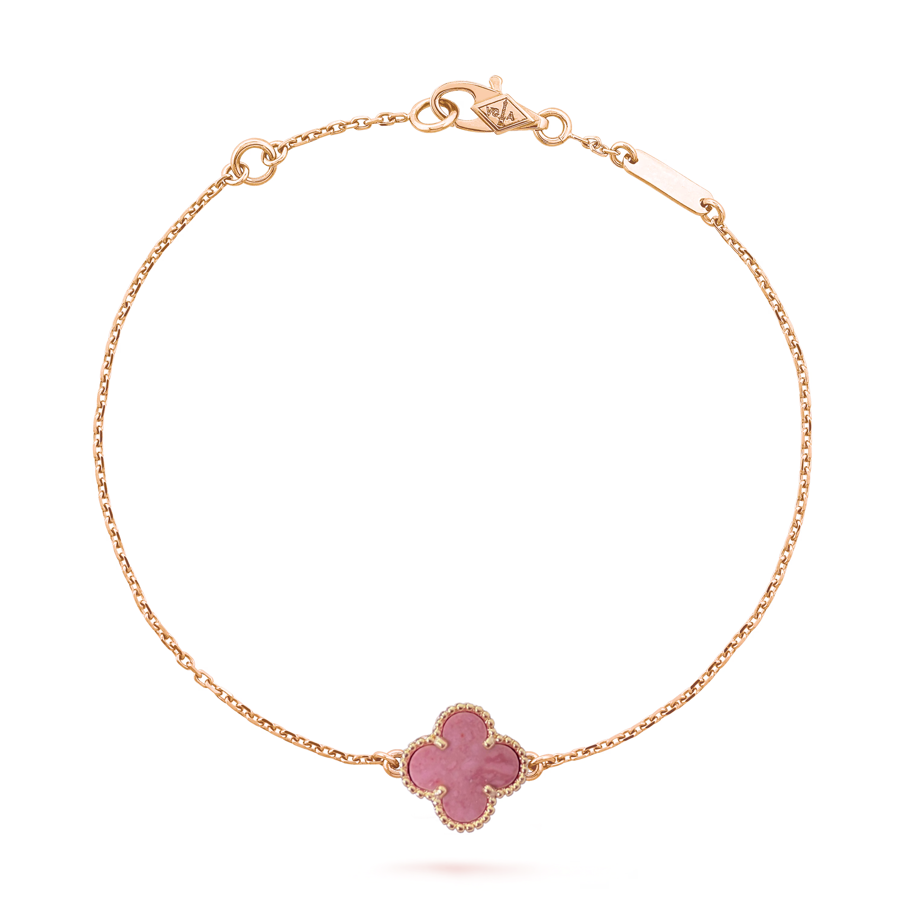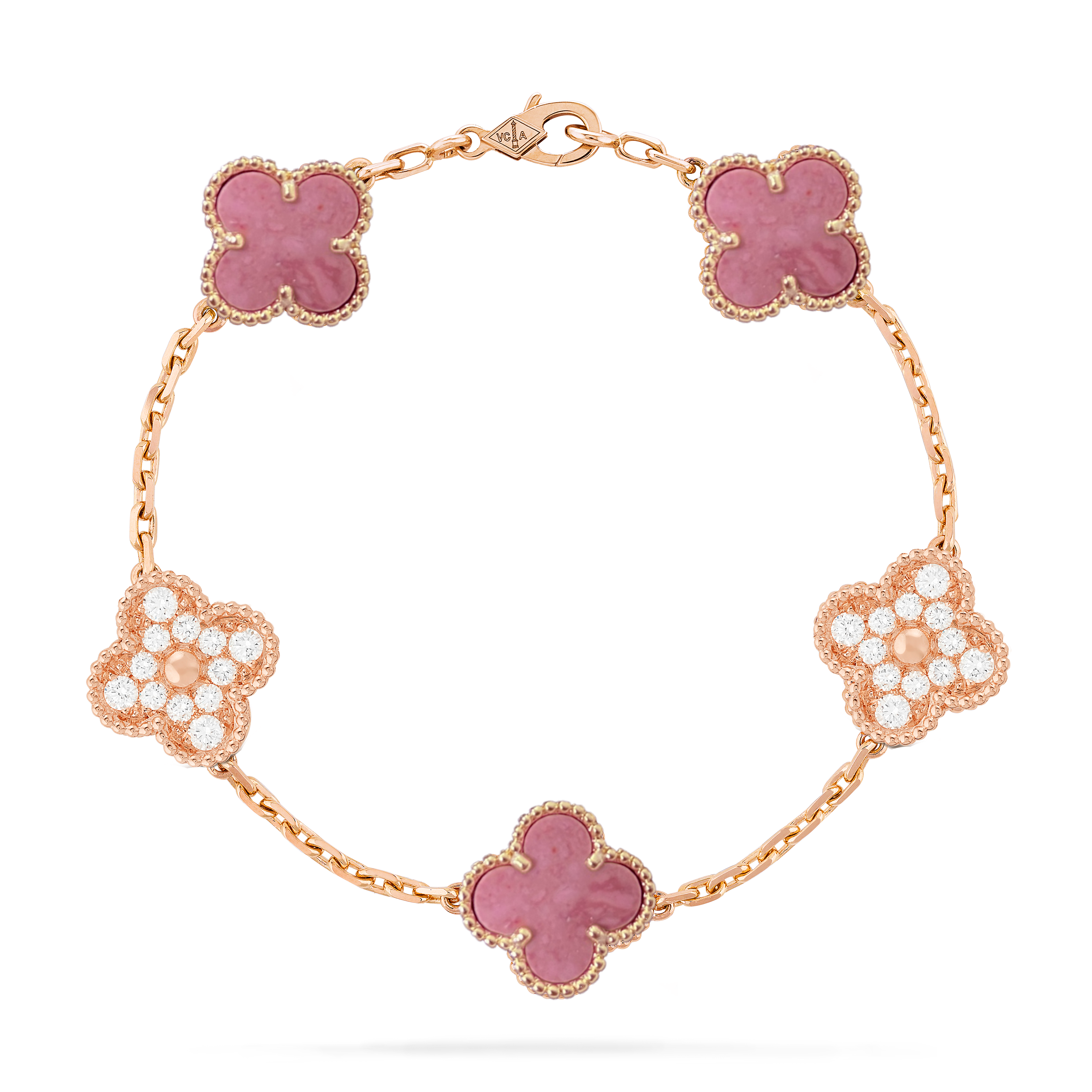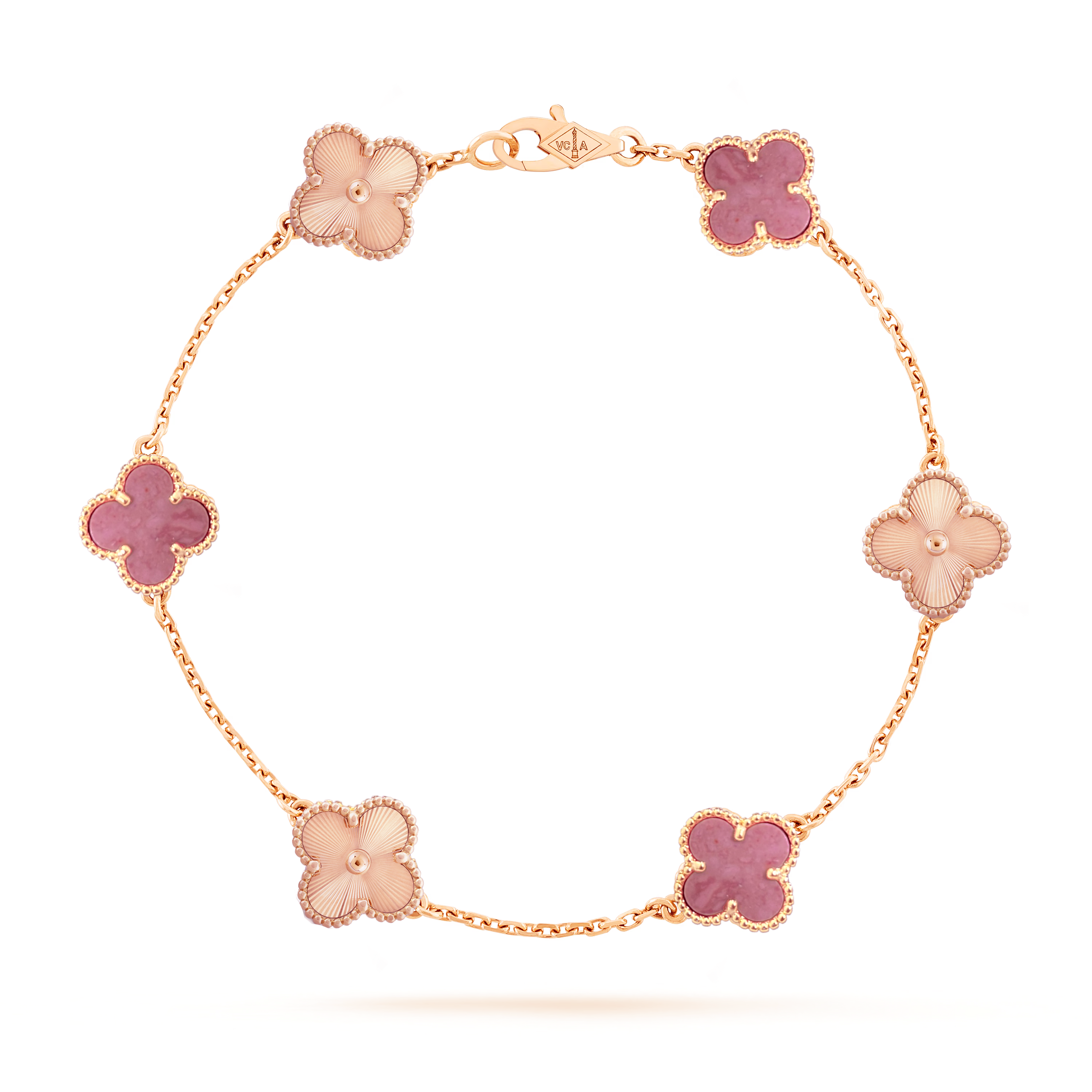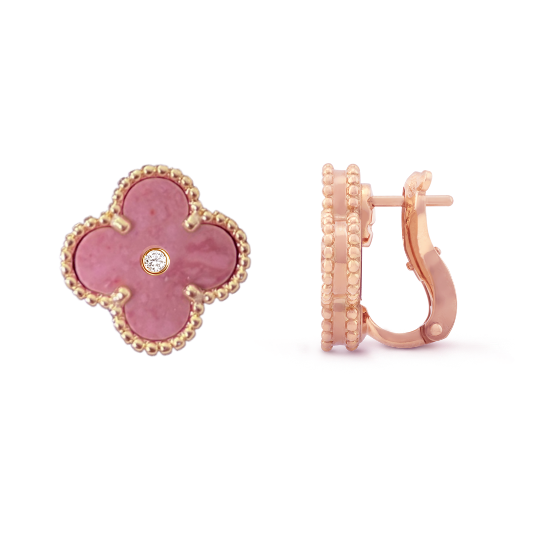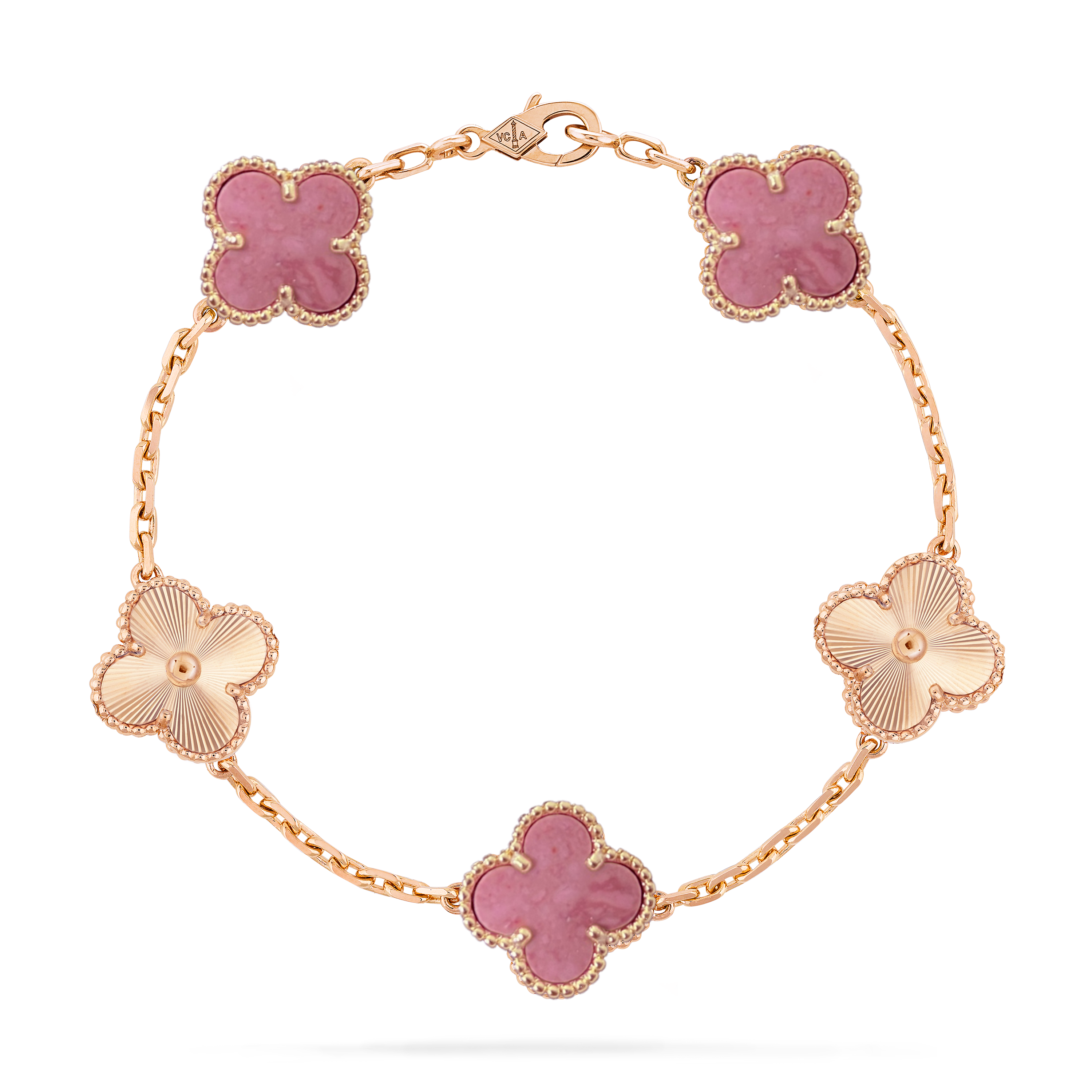 VCT020 VCA rhodonite stone Vintage Alhambra long necklace 20 motifs Pendant bracelet earring clip jewelry set