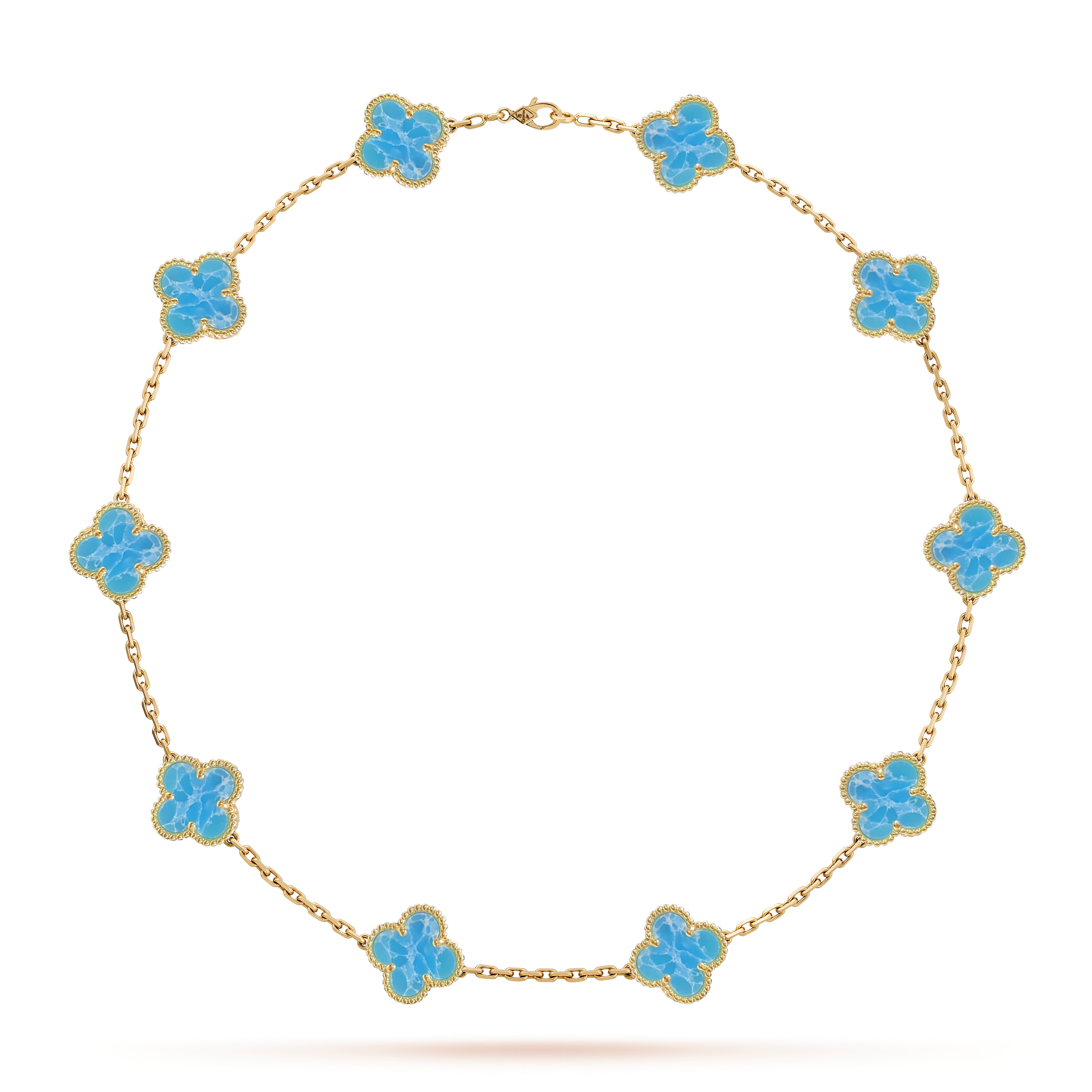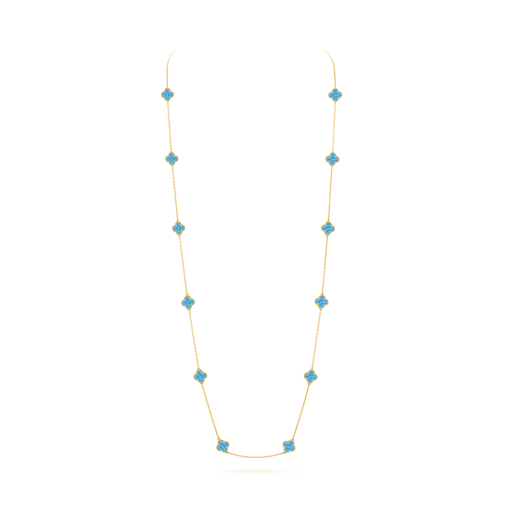 VCT019 VCA larimar stone Vintage Alhambra long necklace 20 motifs 16 motifs bracelet earring clip jewelry set