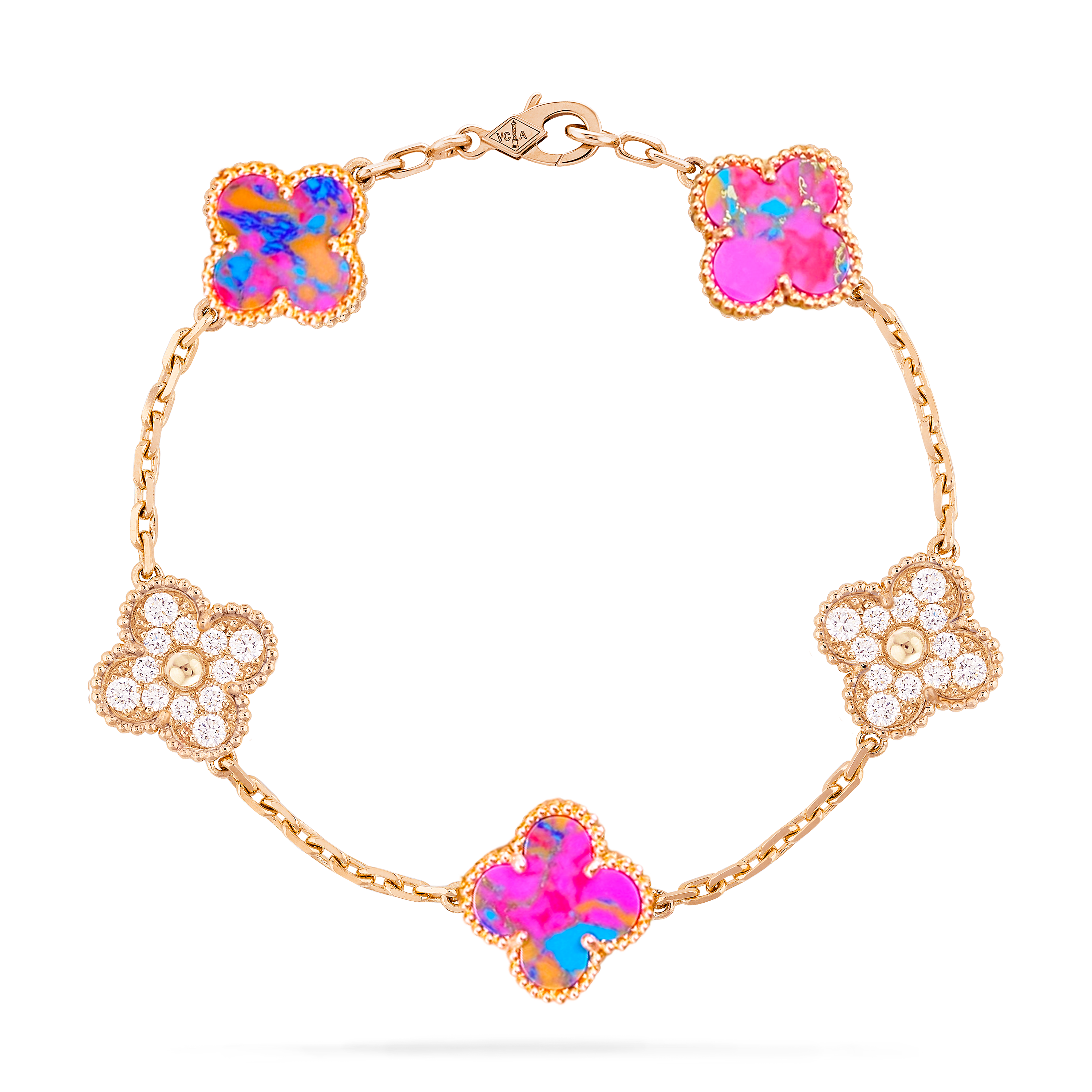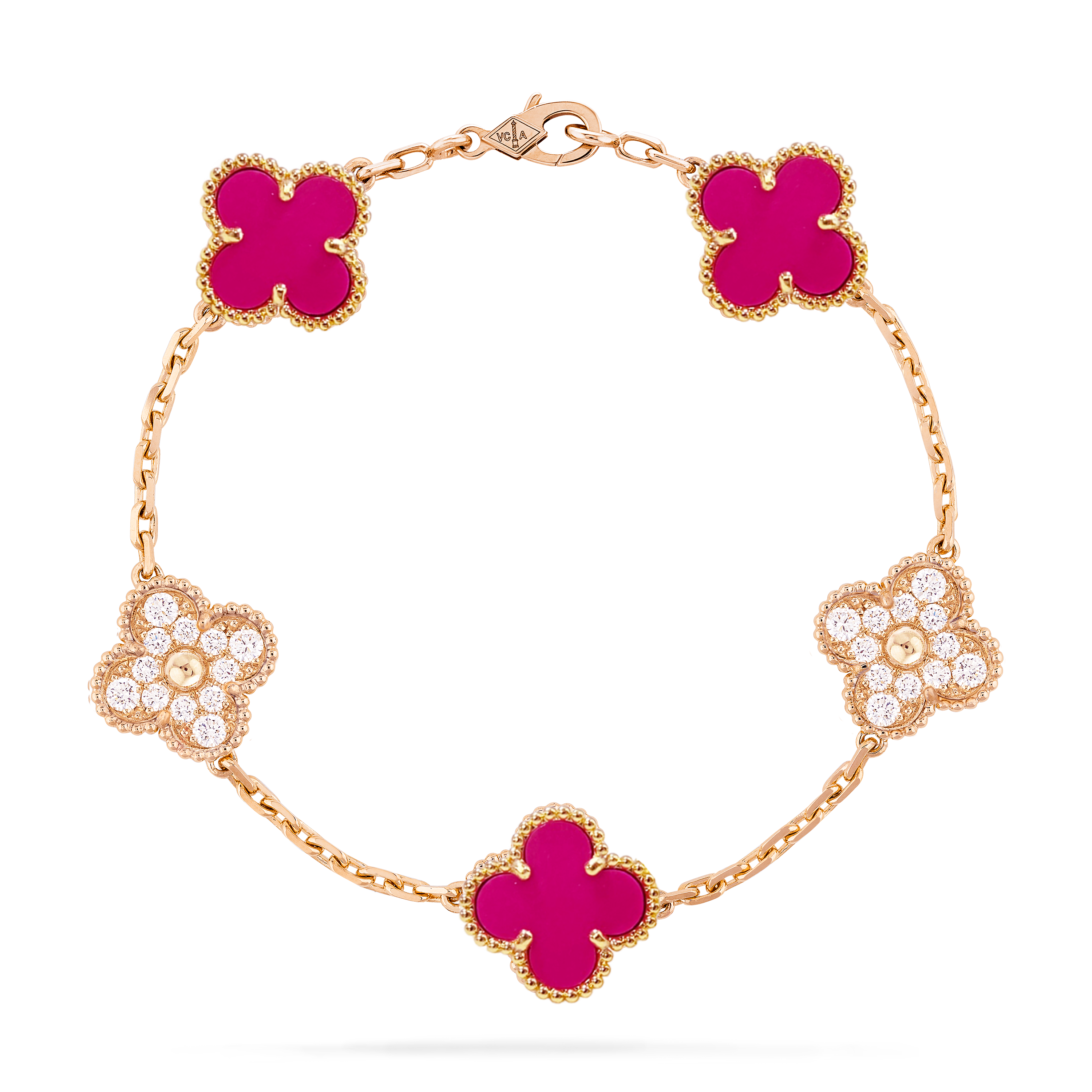 VCT023 VCA Glowing Stones Vintage Alhambra Pendant bracelet earring clip jewelry set