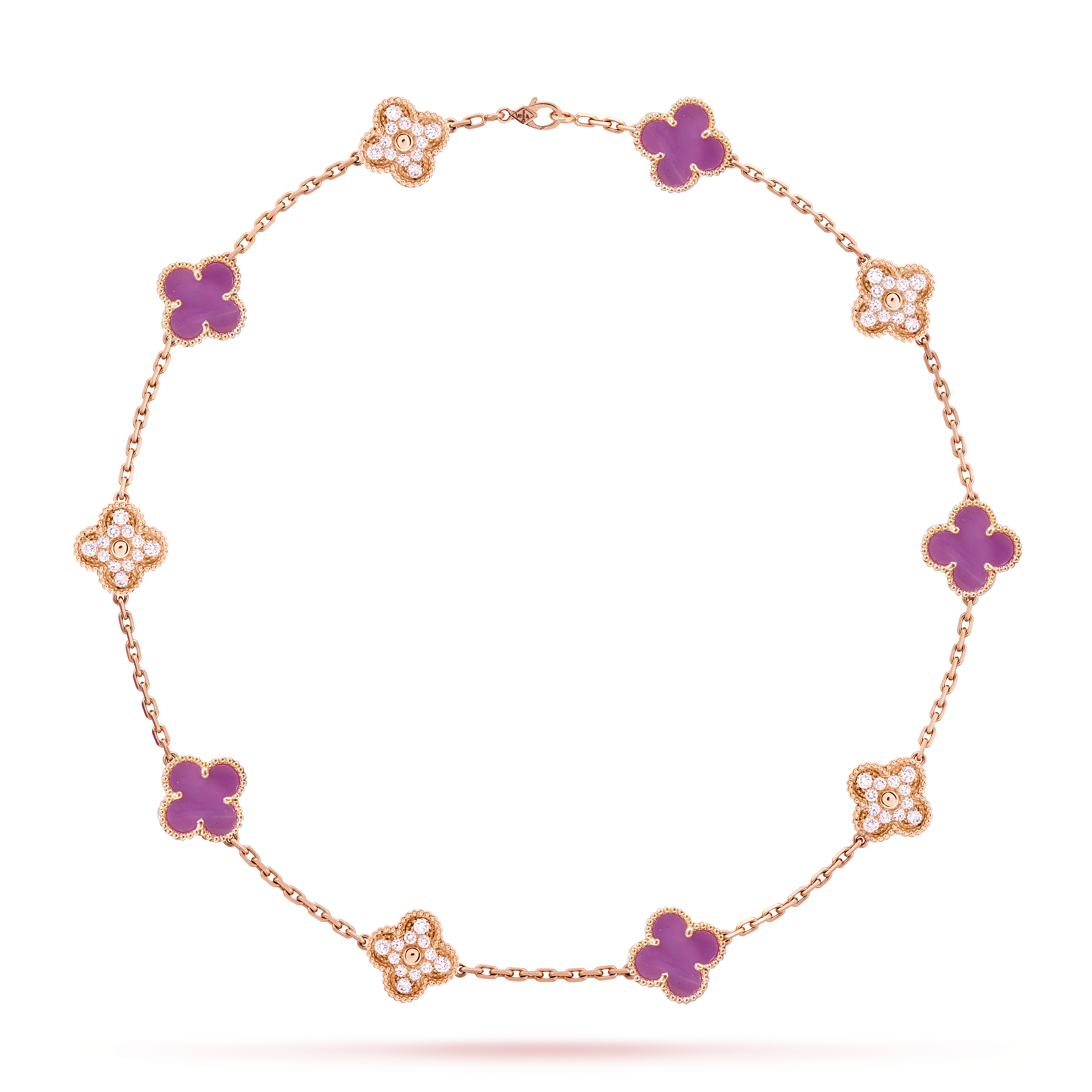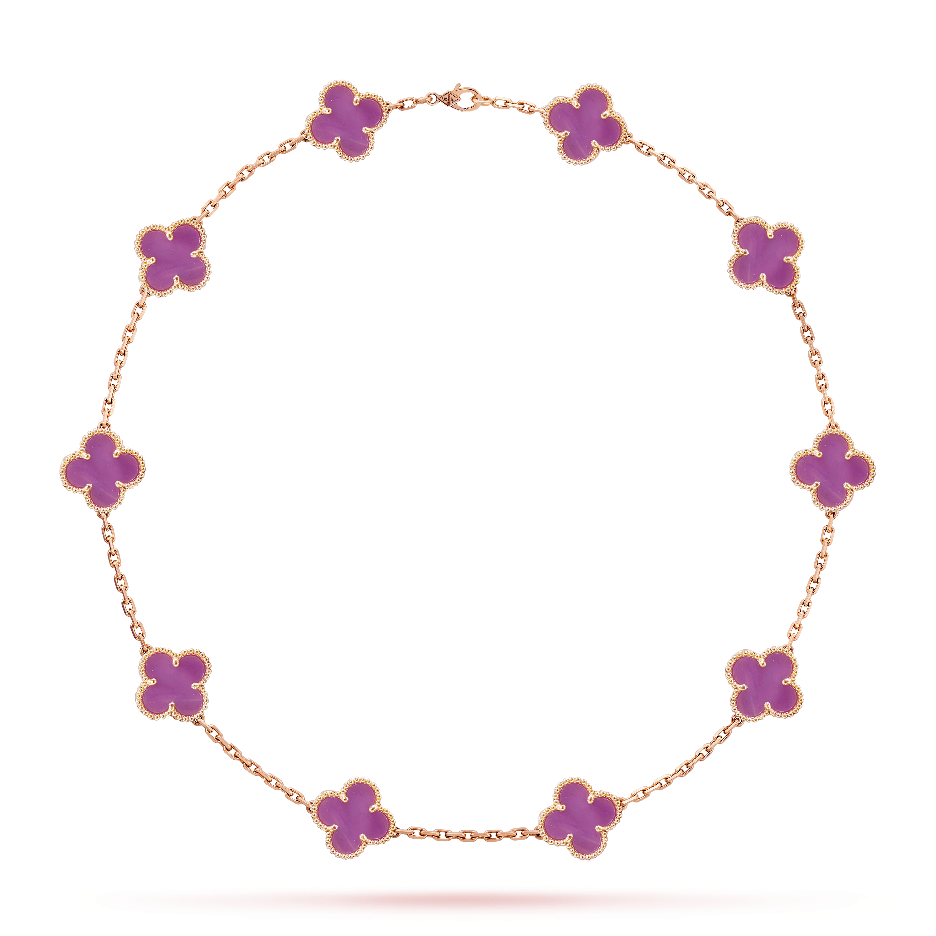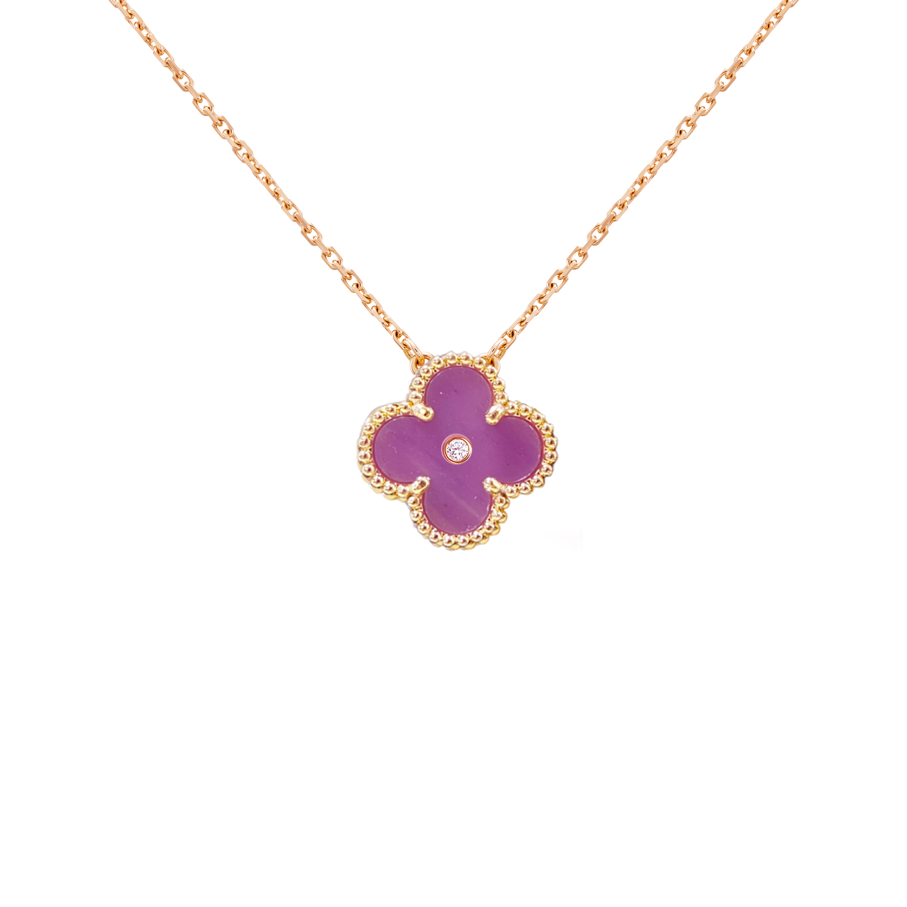 VCT022 VCA violet stone Vintage Alhambra 10 motifs necklace Pendant bracelet earring clip jewelry set