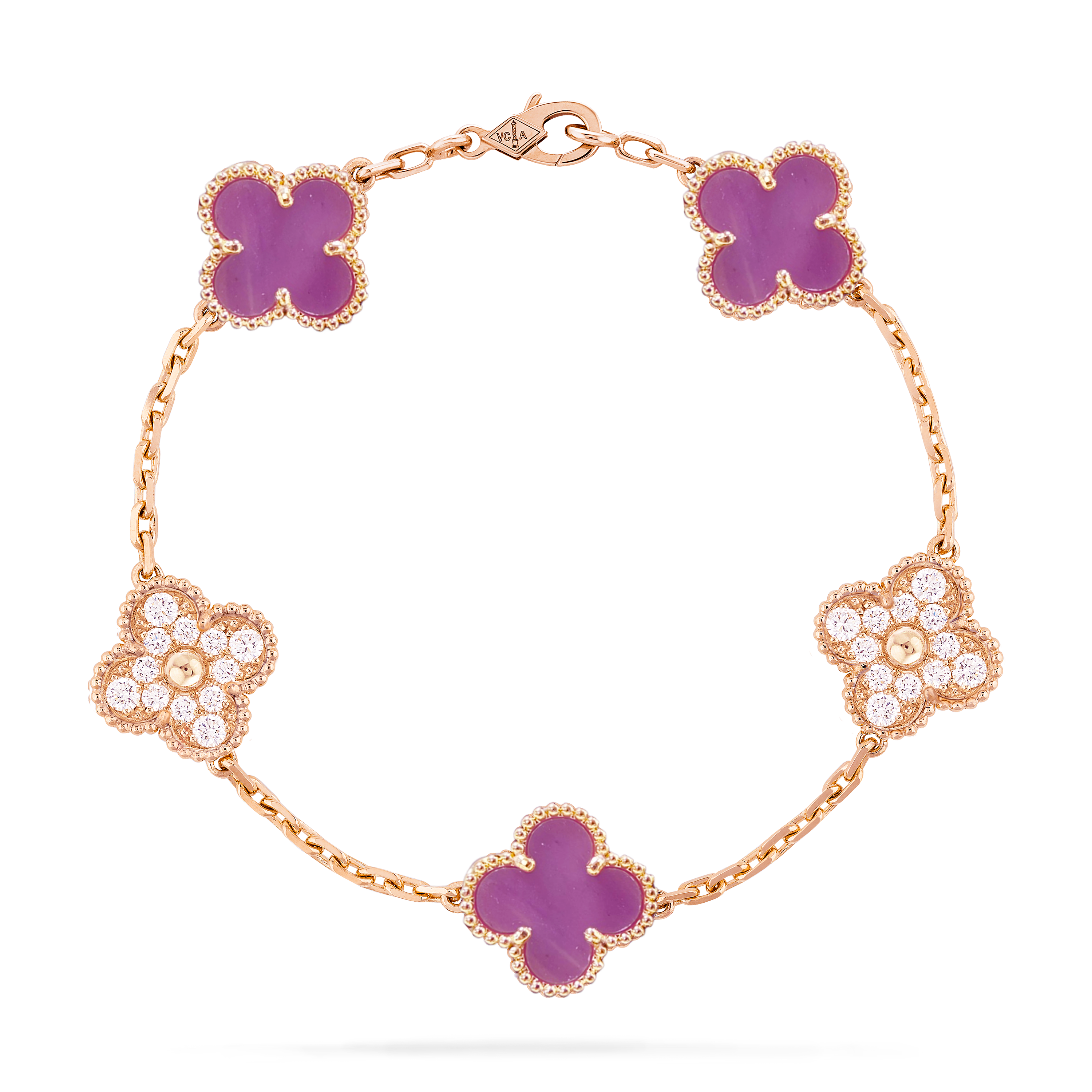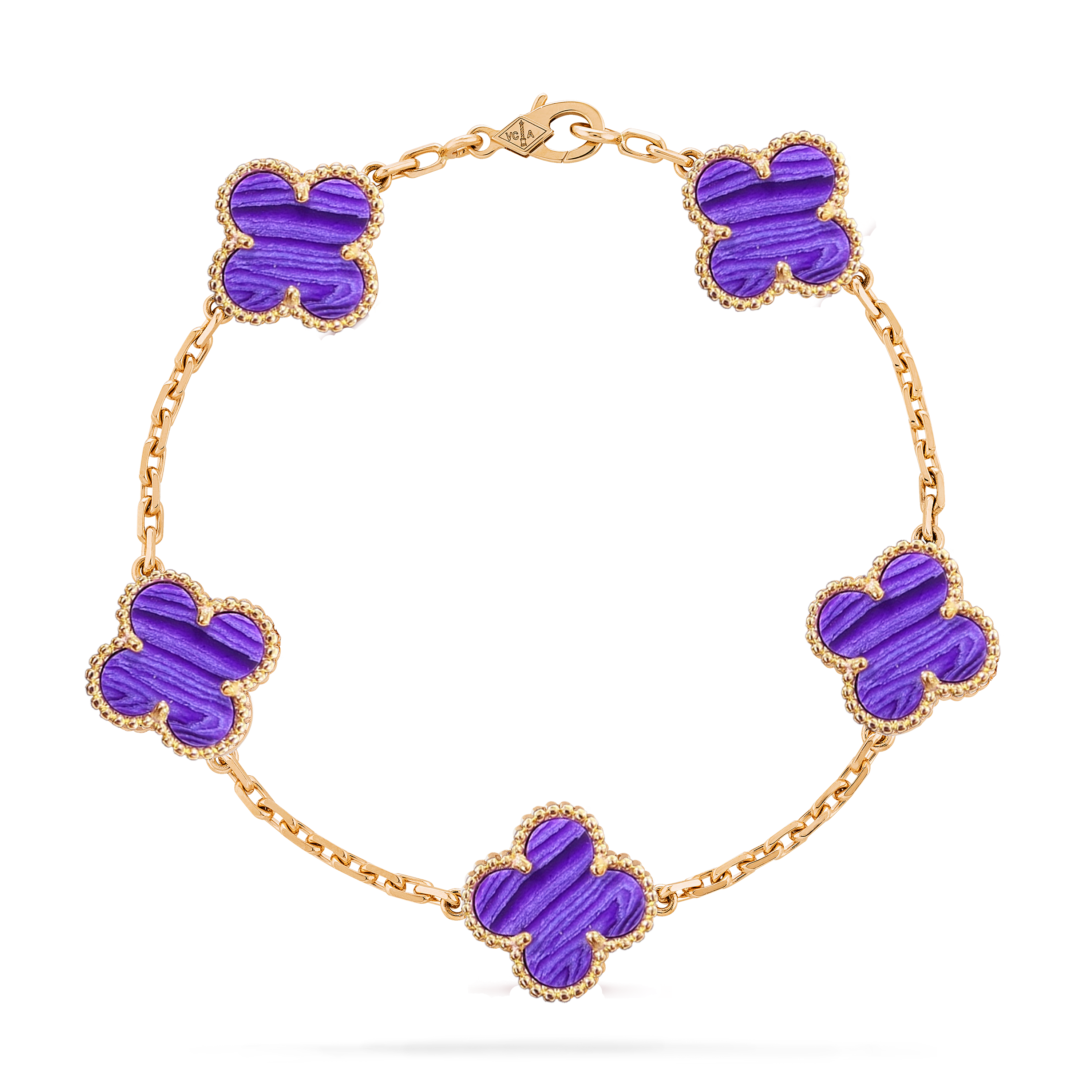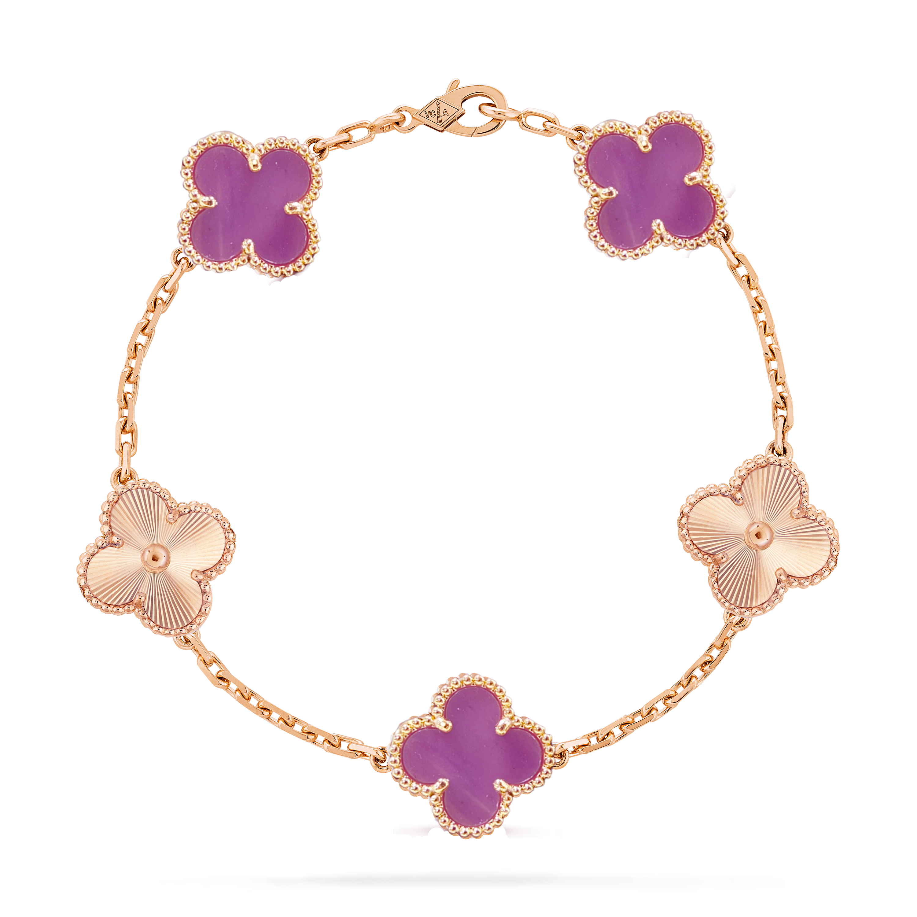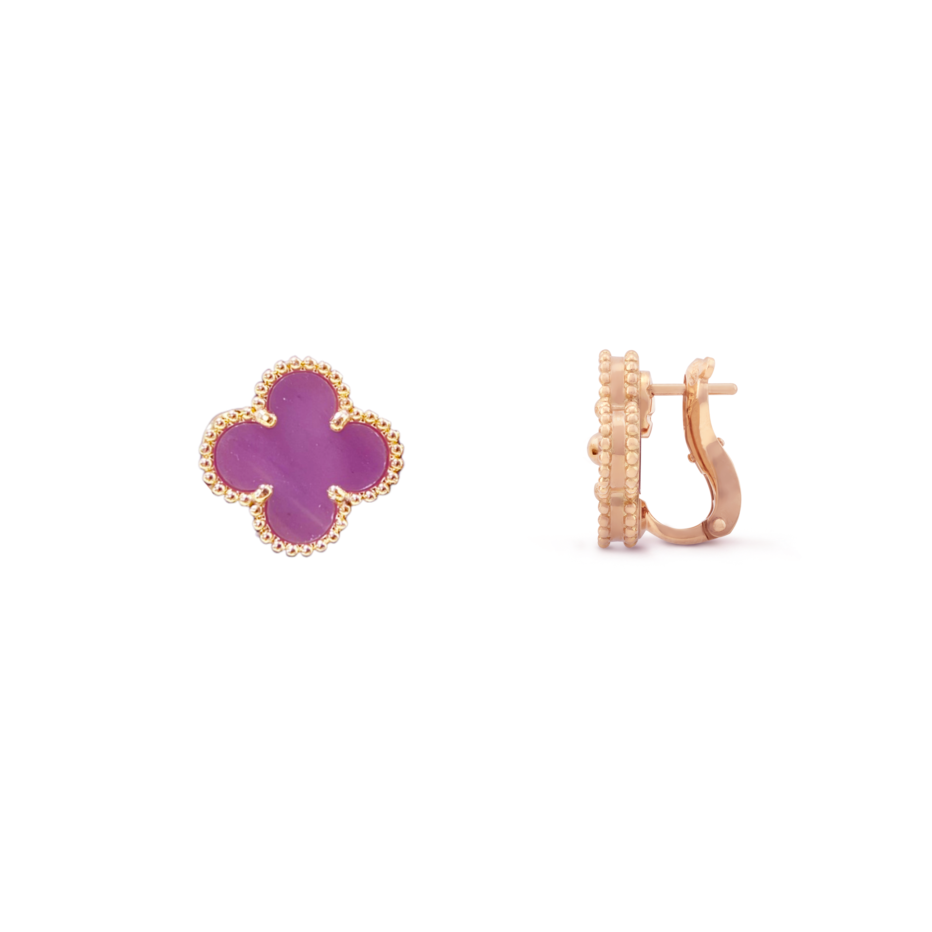 VCT022 VCA violet stone Vintage Alhambra 10 motifs necklace Pendant bracelet earring clip jewelry set