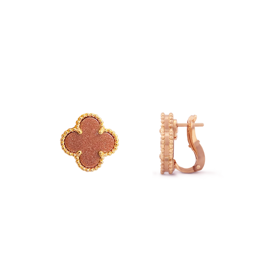 VCT025 VCA Red aventurine Stones Vintage Alhambra Pendant bracelet earring clip jewelry set