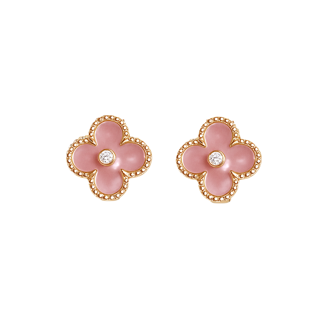 VCNS004 18k Rose Gold vca Lucky spring Necklace bracelet stud earrings