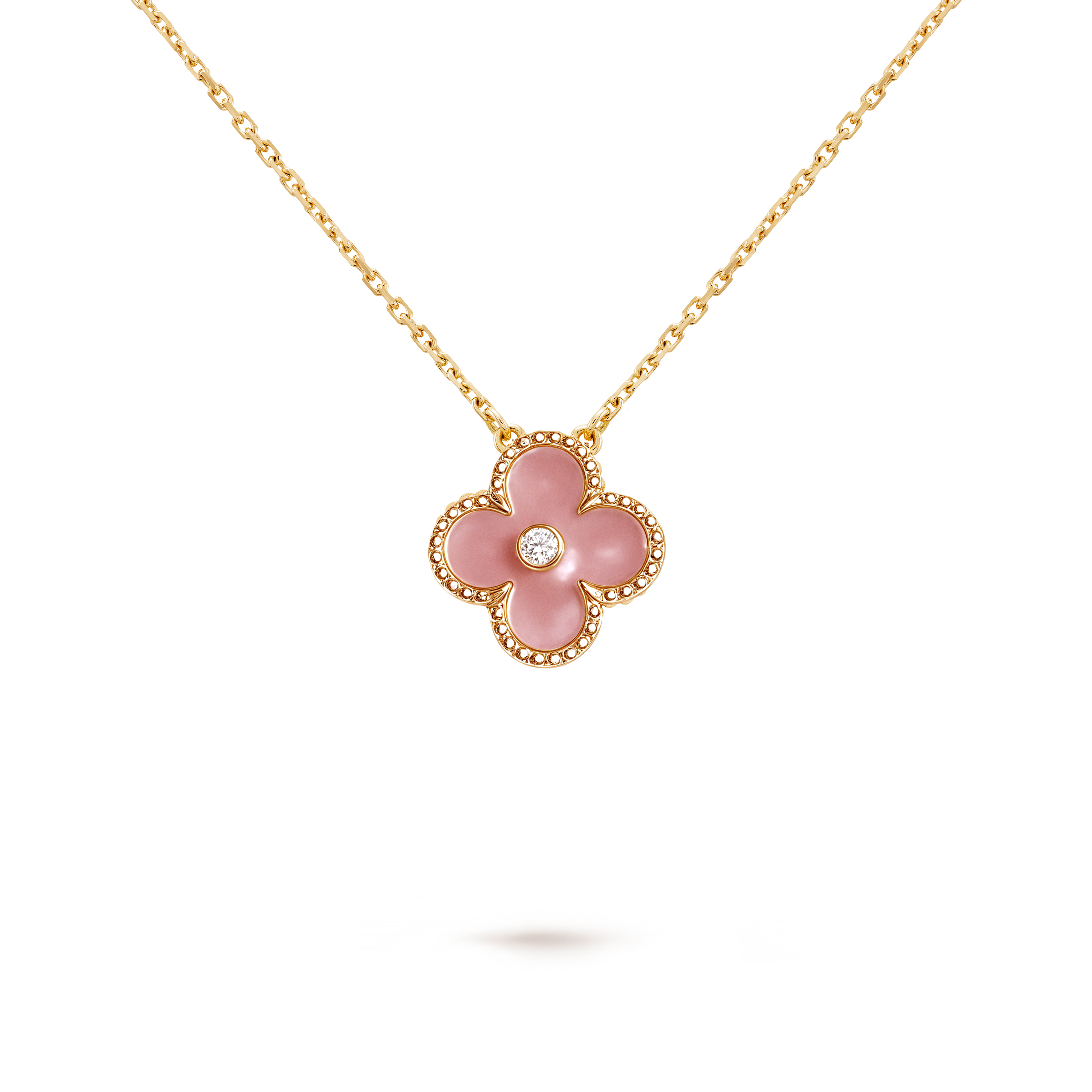 VCNV003 18k rose gold Pink mother of pearl Vintage Alhambra necklace 20 motifs