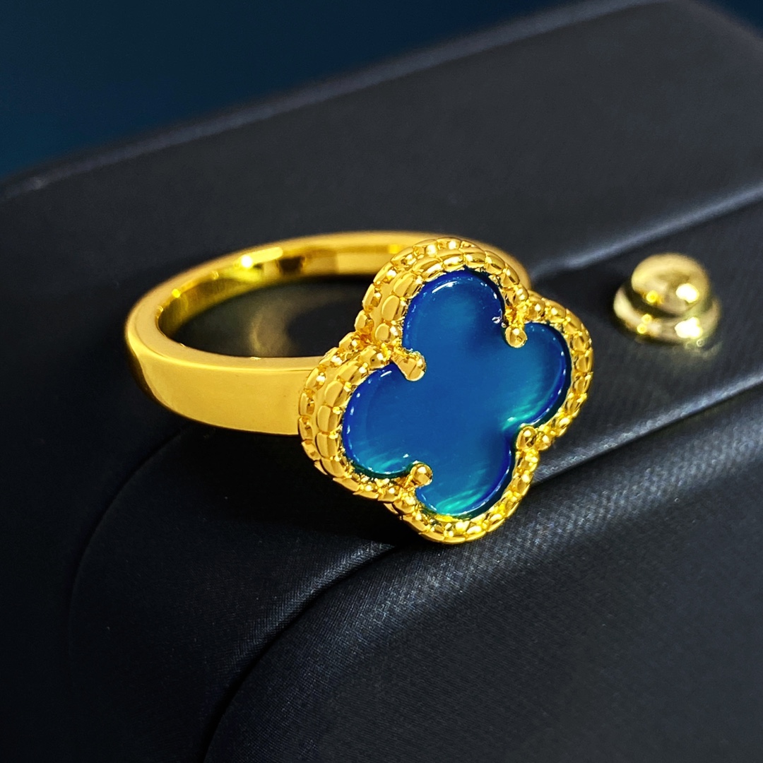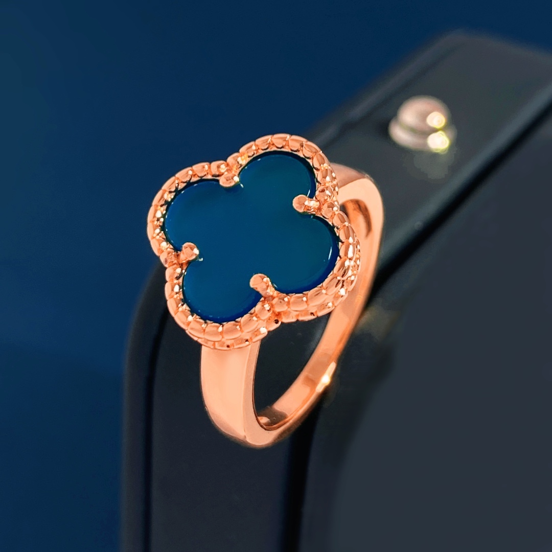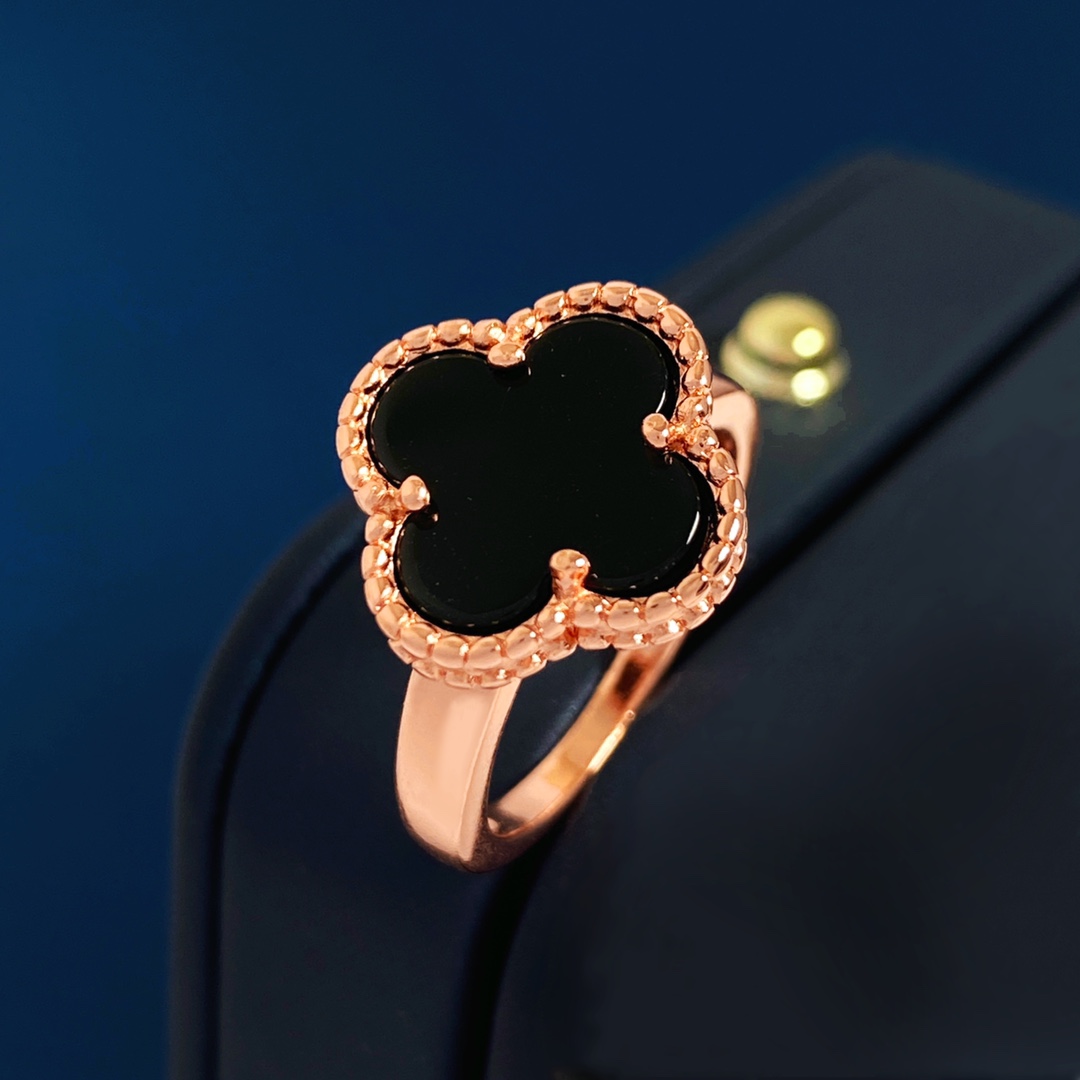 VCRS006 18k Rose Gold/gold onyx VCA Lucky Spring /Lucky Alhambra Ring
