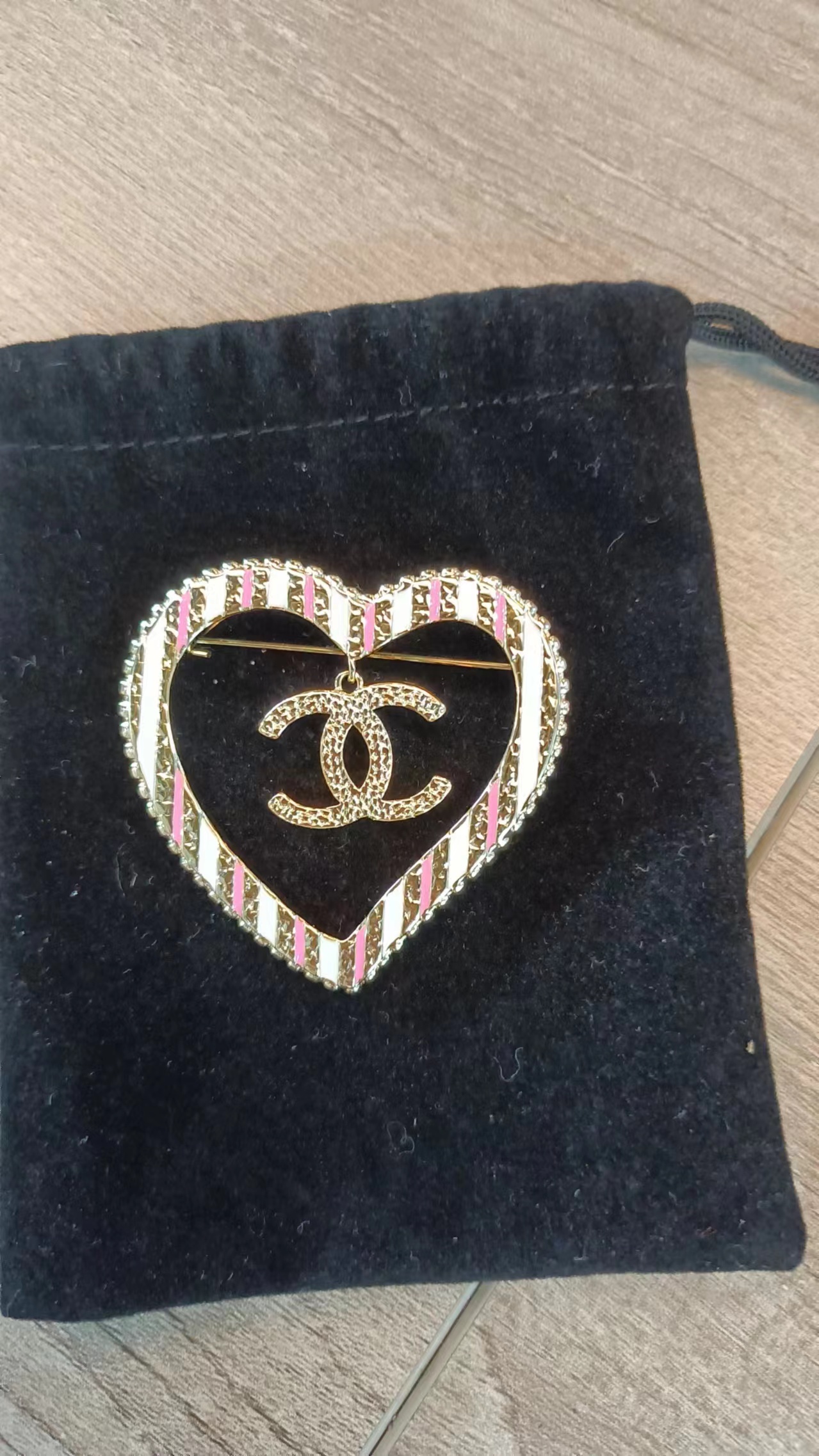 BCB320 Pink striped hollow-out heart double C pendant brooch