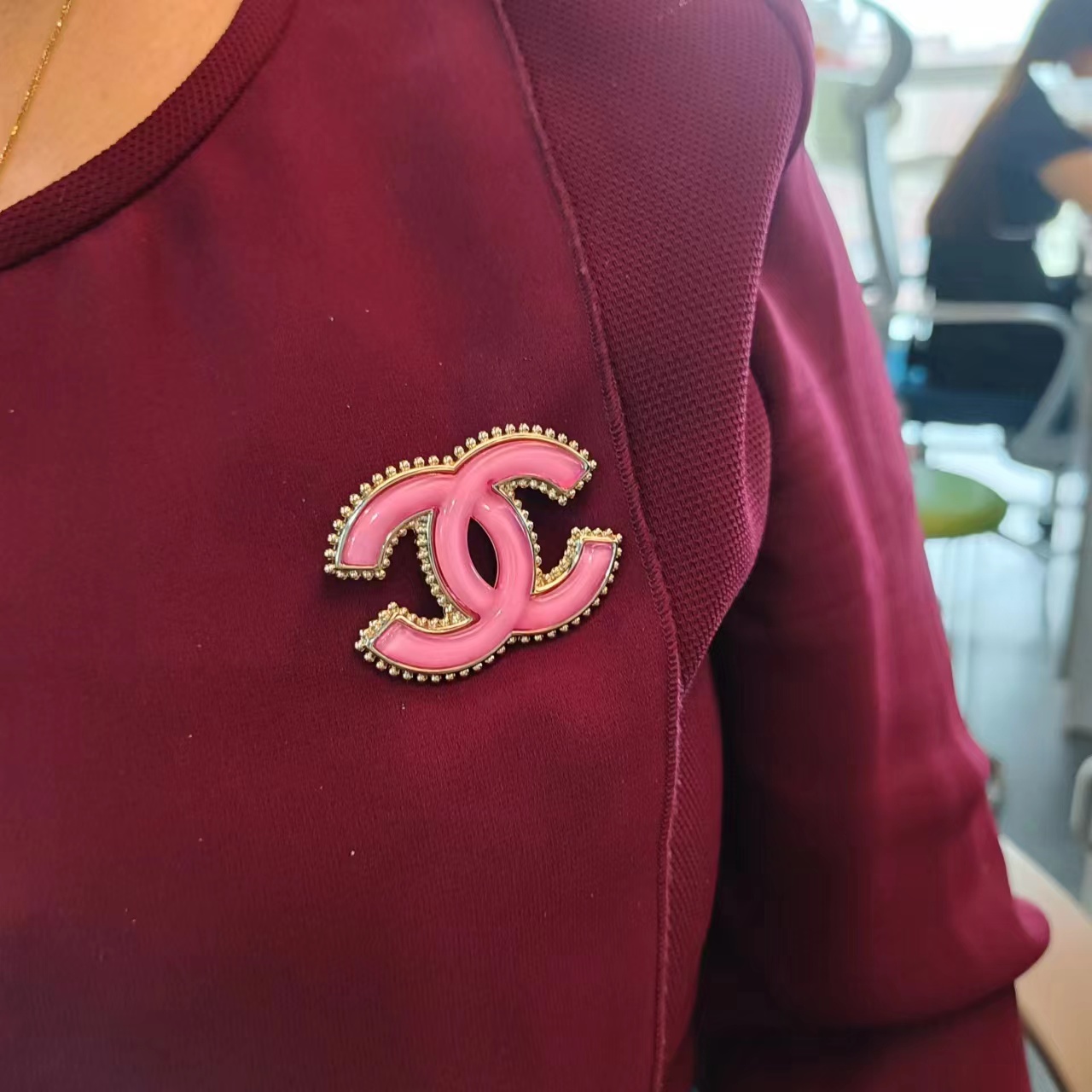 DetailChanel 24P Pink CC logo brooch pinMaterial: Metal brass plated, acrylic , light gold color finish
