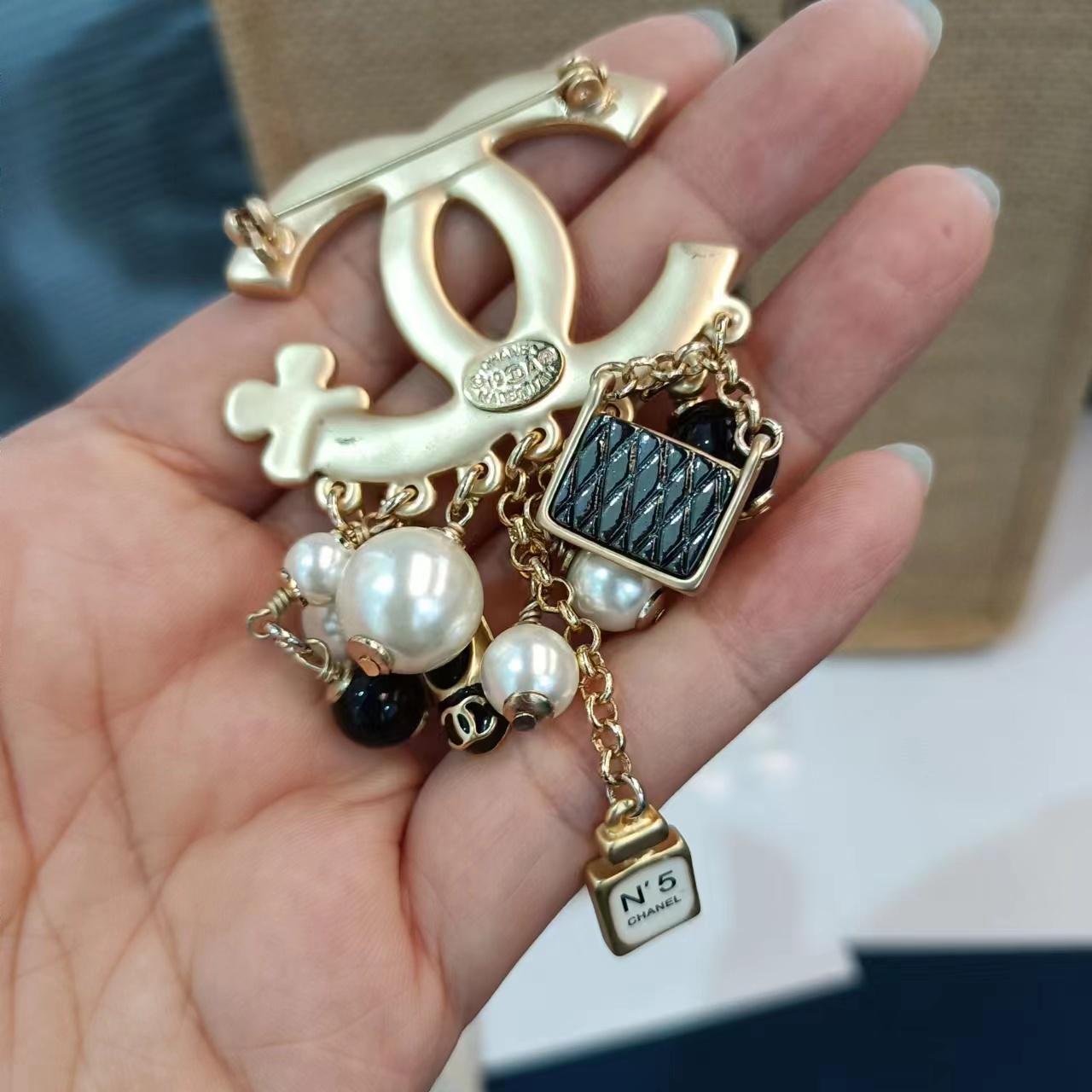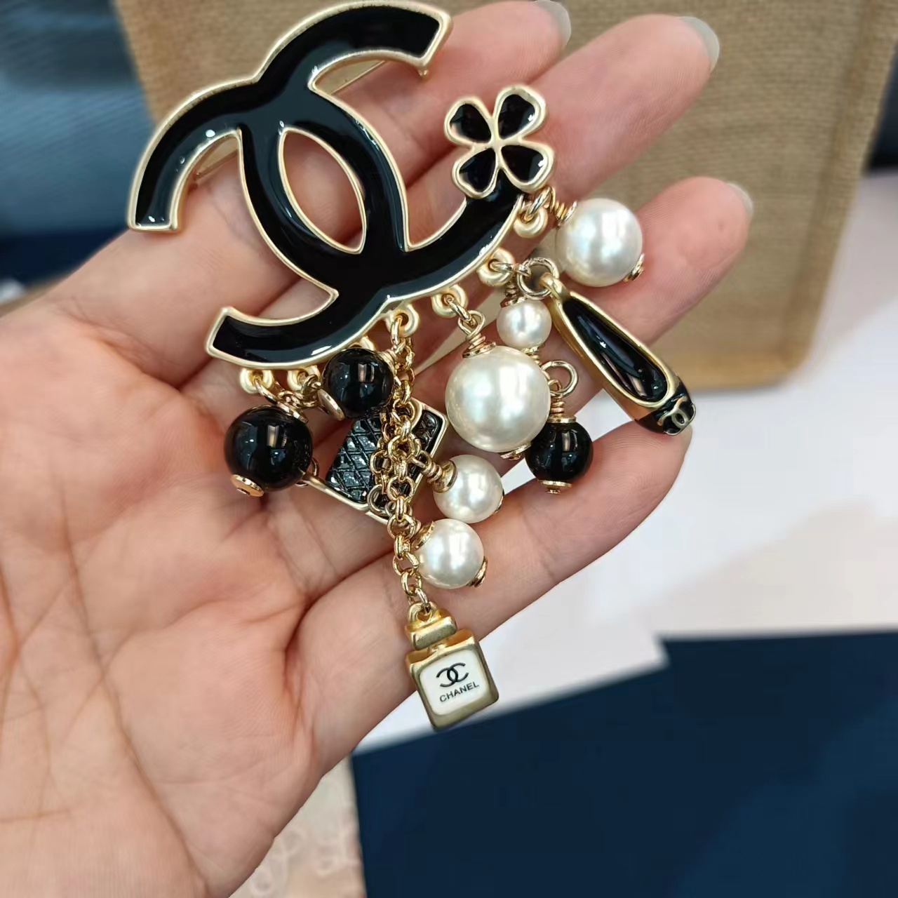 DetailChanel Black enamel CC Logo with perfume bottle bag pearls charm Brooch pinMaterial: Metal , enamel, resin pearl